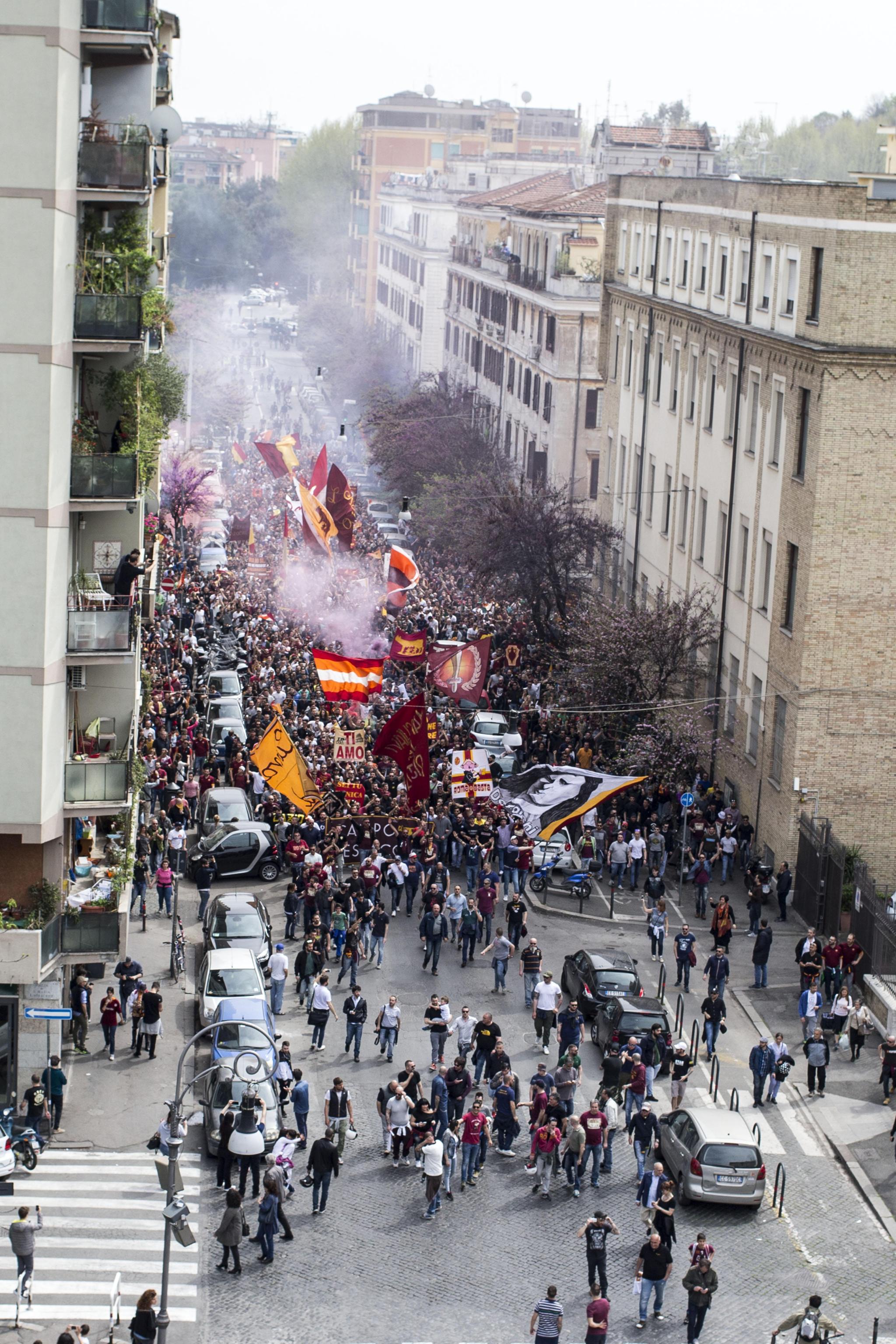 Il popolare quartiere di Testaccio, cuore della tifoseria giallorossa, si è trasformato in una sorta di nuova curva sud, dove si sono radunati i tifosi romanisti che hanno disertato lo stadio nel giorno del derby per protesta contro le barriere poste nelle curve. Circa 3000 tifosi della Roma, dopo essersi radunati nella zona, hanno fatto “un breve corteo non autorizzato con il lancio di petardi e l’accensione di fumogeni: le immagini raccolte – spiega una nota della questura di Roma – sono al vaglio”. Sul fronte della sicurezza, allo Stadio Olimpico, dove ad assistere al derby Lazio-Roma c’erano, secondo la questura, circa 23.000 persone non si è registrata alcuna “criticità di rilievo, né è stato necessario effettuare chiusure al traffico che potessero creare disagi alla circolazione”.