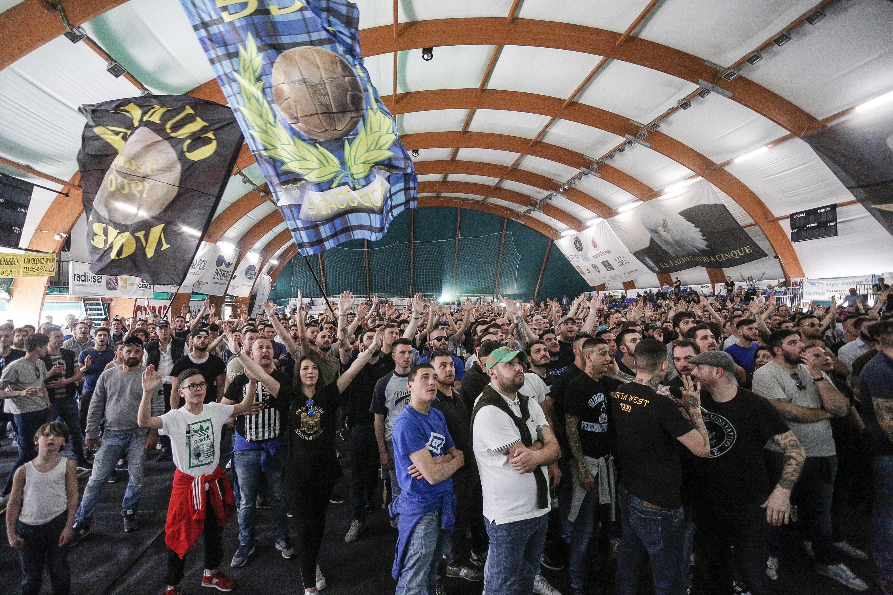 ROMA – Lazio-Roma FOTO: romanisti a Testaccio, laziali a Tor di Quinto. Lazio-Roma si giocava all’Olimpico, ma la Curva Sud era a Campo Testaccio e la Curva Nord era al PalaGems di Tor di Quinto. Ecco le foto di un derby particolare, vissuto in tre punti diversi della Capitale. L’Agenzia Ansa ha riportato così il comunicato della questura di Roma: