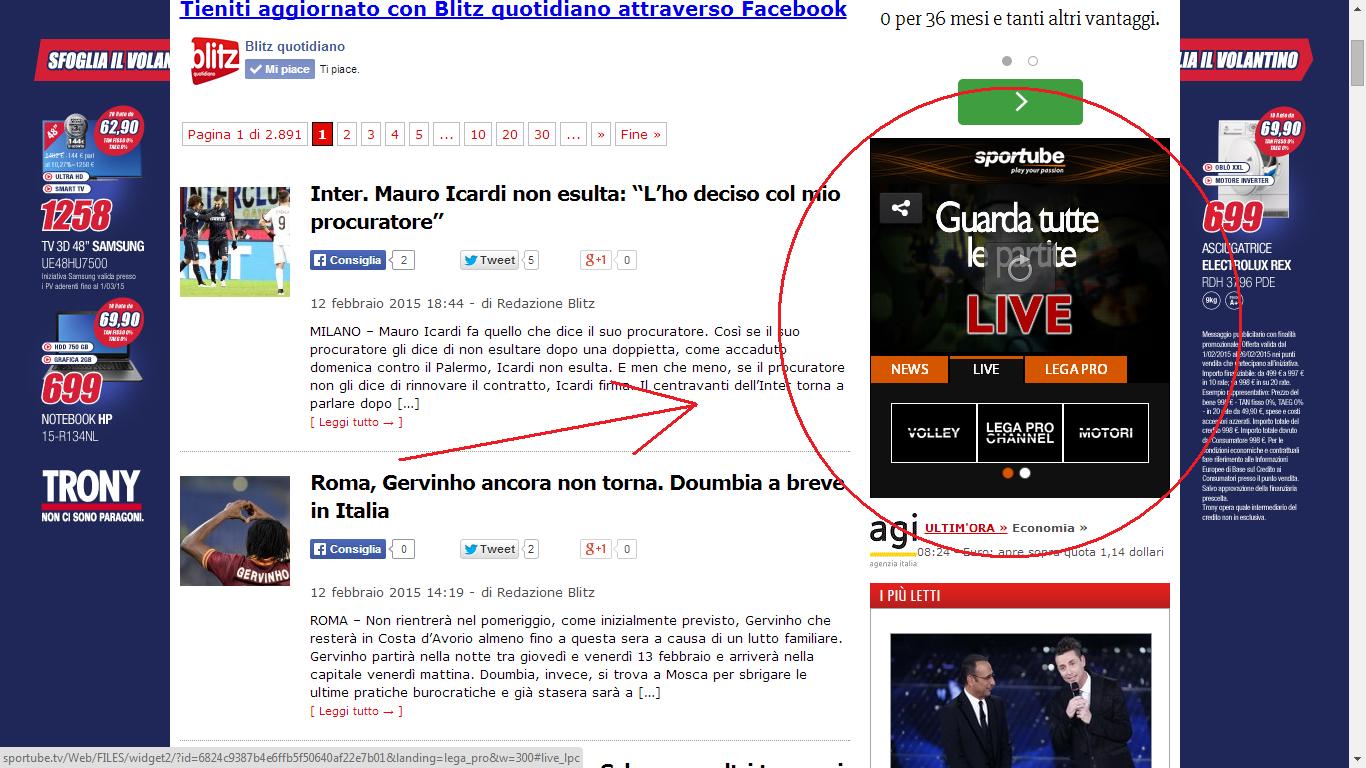 4) Per vedere le news di Sportube.tv (Sport, curiosità e gossip), cliccare su NEWS e quindi scorrere le notizie finché non trovate quella che vi interessa.