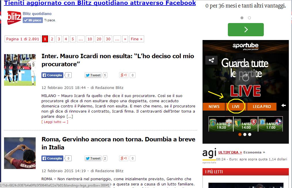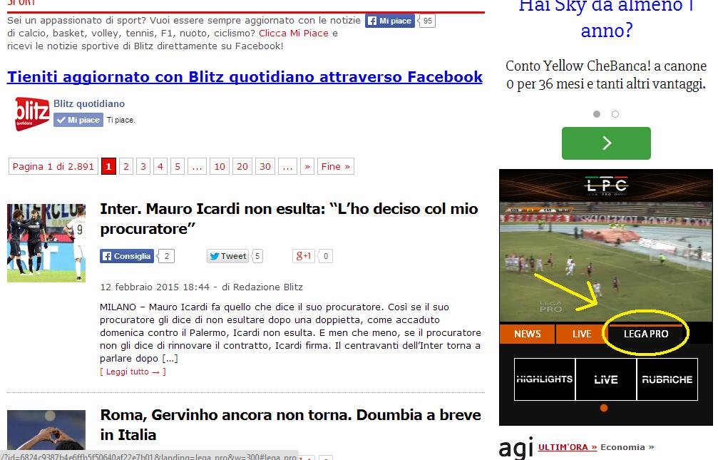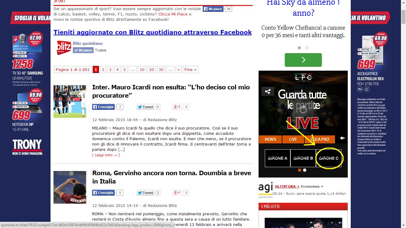 1) Per vedere in streaming le dirette live delle partite di Lega Pro (e anche: gare di volley e di moto), cliccare su LIVE, poi su LEGA PRO CHANNEL e quindi selezionare la gara che vi interessa.