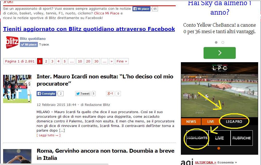 3) Per vedere gli highlights delle partite di Lega Pro, cliccare su LEGA PRO, poi su HIGHLIGHTS, selezionare il girone che vi interessa (GIRONE A – GIRONE B – GIRONE C) e quindi la partita della quale volete rivedere gol e azioni più importanti.
