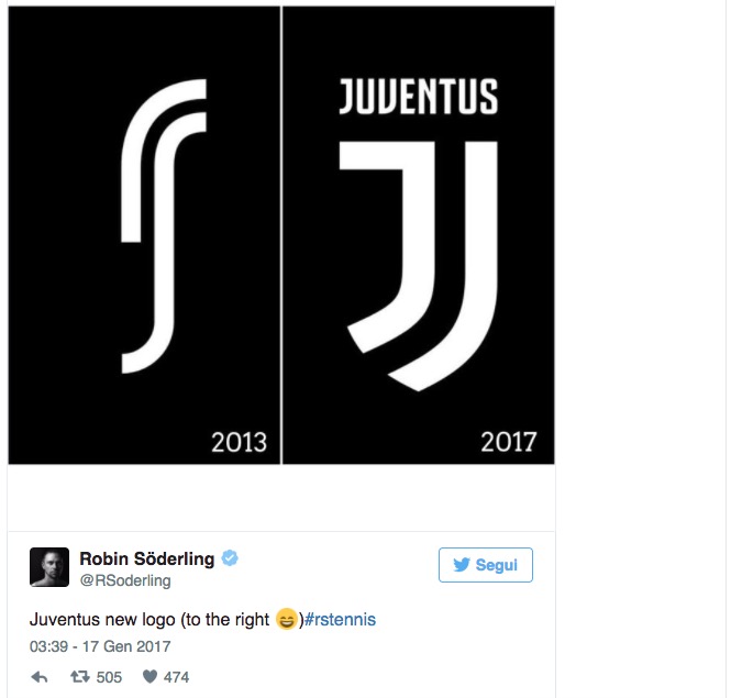 Robin Soderling, ex tennista, due volte finalista al Roland Garros, ha messo a confronto lo stemma del proprio marchio “RS Tennis” fondato nel 2013 e il nuovo simbolo bianconero. La somiglianza è chiara, e Soderling ha commentato la foto con una risata. Il marchio del tennista svedese, RS Tennis fondato nel 2013 riguarda la vendita di prodotti legati al tennis, dalle palline alle corde per le racchette.