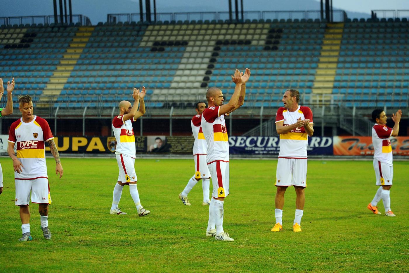 Nella foto:i giocatori del benevento a fine gara sotto la curva