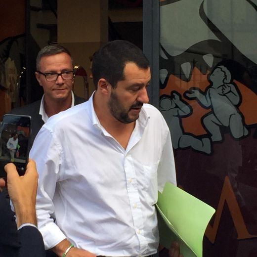 “Ho comprato un pantaloncino, mi serviva”, ha risposto ai giornalisti che lo attendevano all’uscita. Un paio di calzoncini da gara bianchi, con due strisce giallorosse sui lati. Matteo Salvini milanista compra pantaloncini As Roma FOTO ANSA.