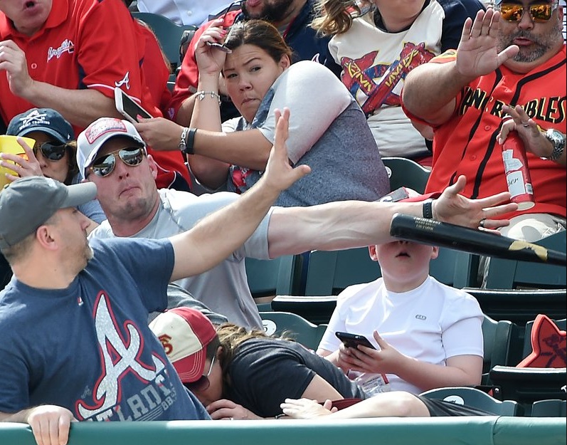MIAMI – Mazza da baseball su viso bambino, il tifoso vicino… Un gesto istintivo: un braccio steso al momento giusto, una frazione prima che una pesante mazza da baseball lanciata a tutta velocità si stampasse contro il viso di un bambino distratto da uno smartphone. Succede tutto in Florida, durante la partita di baseball tra i Pittsburgh Pirates e gli Atlanta Braves. Ad un certo punto della gara, infatti, un giocatore ha perso il controllo della mazza che ha iniziato a volare a tutta velocità verso il pubblico. La mazza in questione si sarebbe stampata certamente sul volto di un bambino: il piccolo, infatti, completamente ignaro di quanto stava per accadere era tutto preso a giocare con il telefono. Per fortuna un altro spettatore, vedendo la scena, ha allungato il braccio fermando la mazza e impedendo che il bambino in questione si facesse davvero male.