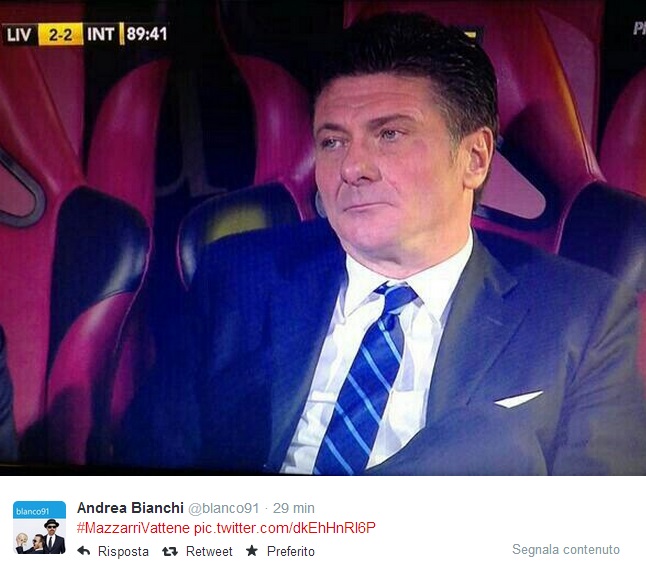 ROMA – #mazzarrivattene, i tifosi dell’Inter si scatenano su Twitter contro Walter Mazzarri dopo la sconfitta nel derby. Una vera e propria protesta online. Al tecnico, oltre risultato e gioco nel derby, vengono imputati il mancato ingresso di Zanetti e la scarsa fiducia nei giovani.
