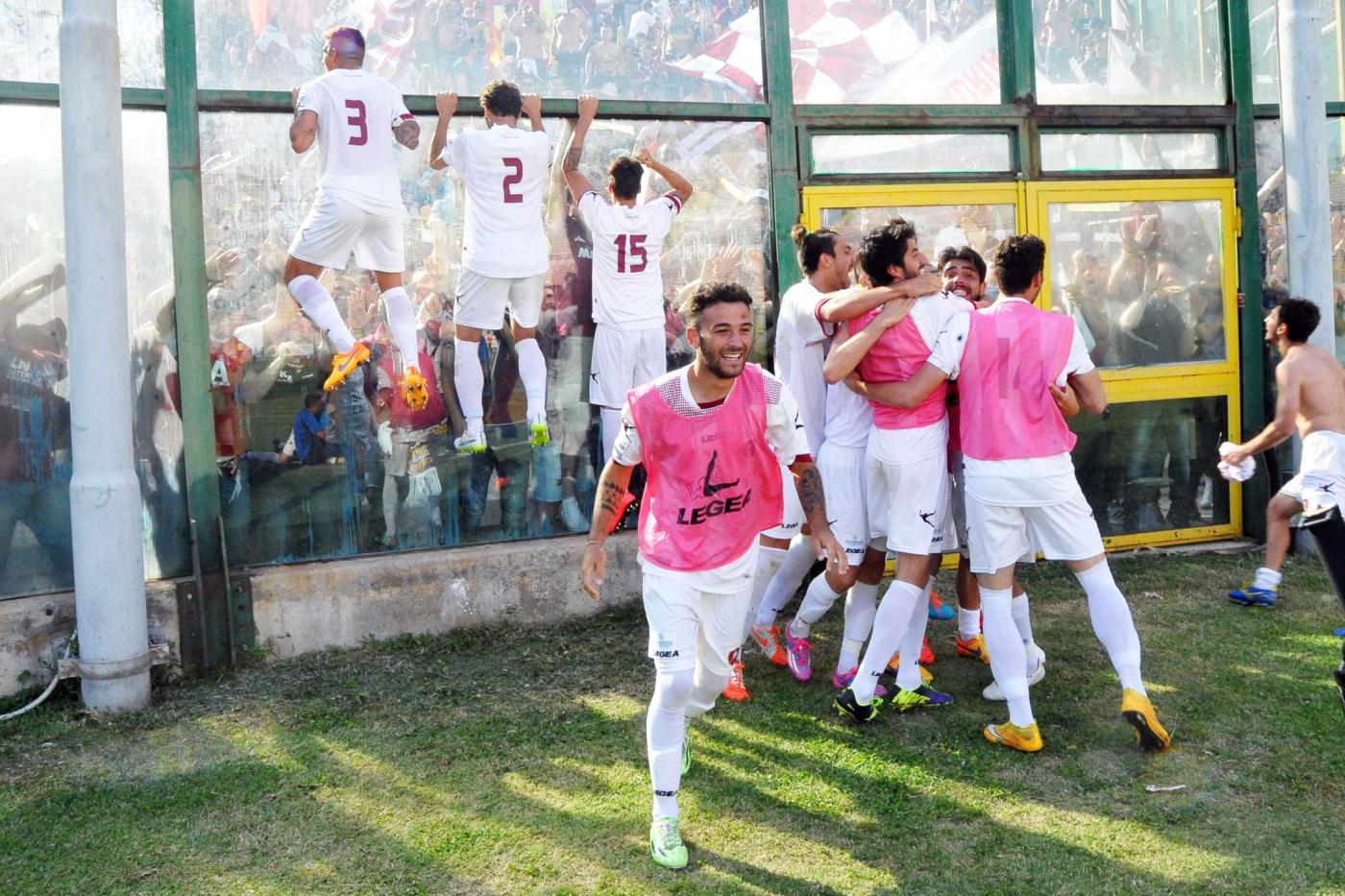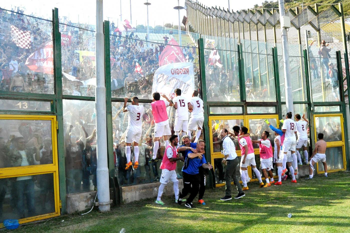 MESSINA – Messina-Reggina 0-1: guarda le foto del derby dello Stretto, gara di ritorno dei playout di Lega Pro Unica 2014-15. È finita con le lacrime dei 4.500 messinesi e la gioia dei 1.000 tifosi reggini che hanno attraversato lo Stretto col sogno di un’impresa in cui nessuno poteva credere il 9 maggio. Alla fine del campionato la Reggina era retrocessa in serie D. Ma i due punti riassegnati dal Coni l’hanno fatta rientrare nel discorso playout e l’hanno messa di fronte ai rivali del Messina, che in campionato avevano vinto tutte e due le partite (1-0 al Granillo, 4-1 al San Filippo). Nei playout è stata la Reggina a vincerle tutte, andata e ritorno. Guarda gol e highlights. Le FOTO della partita di andata.