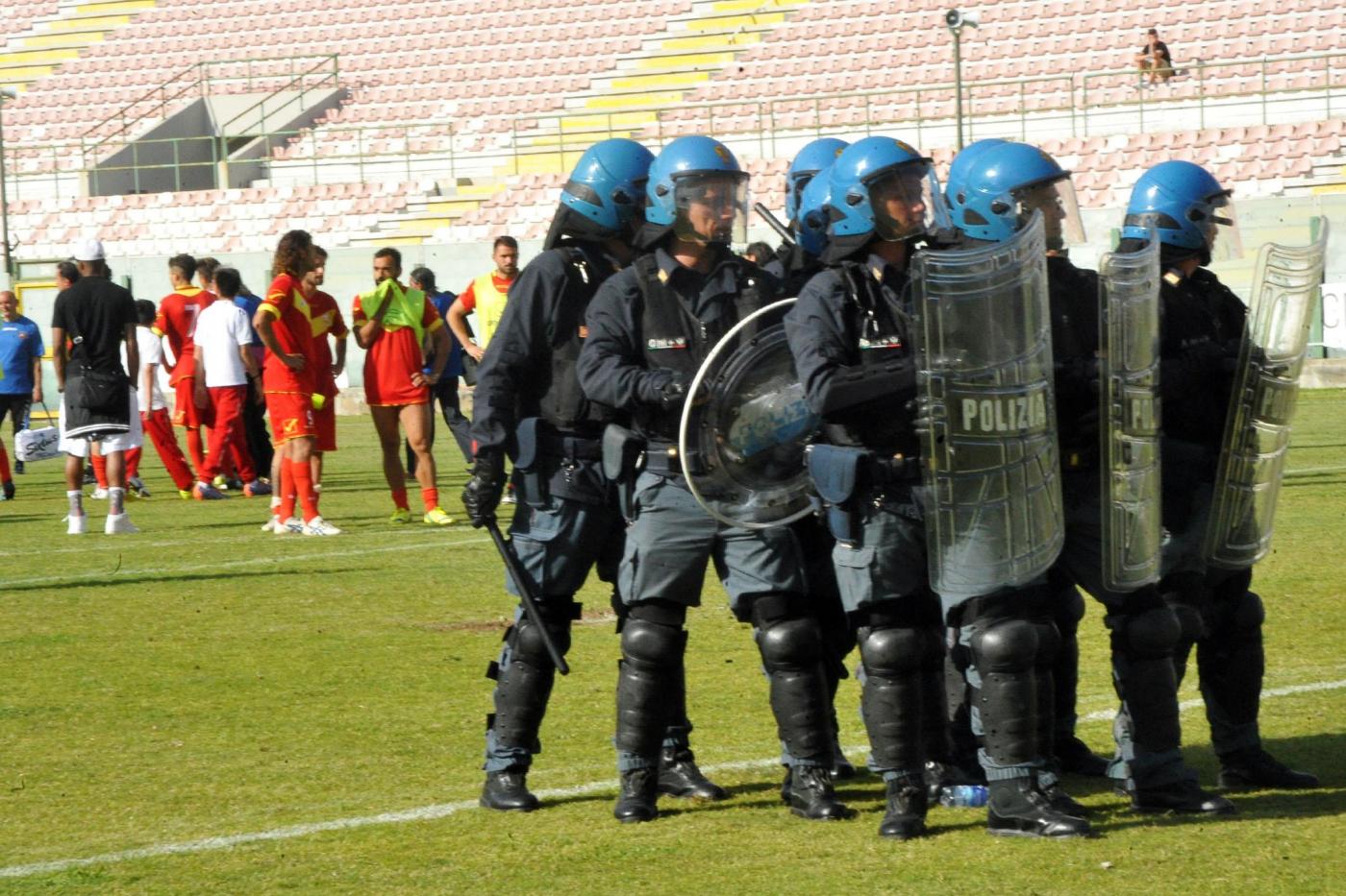 TENSIONE. Nel primo tempo gli unici peÂriÂcoÂli li crea la squaÂdra caÂlaÂbreÂse. Nella riÂpreÂsa molti epiÂsoÂdi sgraÂdeÂvoÂli. La gara riÂprenÂde con un quarÂto d’ora di riÂtarÂdo. E l’alÂleÂnaÂtoÂre amaÂranÂto in triÂbuÂna per un’espulÂsioÂne riÂmeÂdiaÂta nel tunÂnel al rienÂtro negli spoÂgliaÂtoi, dove ci saÂrebÂbe stata molta tenÂsioÂne tra i gioÂcaÂtoÂri delle due squaÂdre, che saÂrebÂbe sfoÂciaÂta nell’agÂgresÂsioÂne del diÂfenÂsoÂre CiÂrilÂlo nei conÂfronÂti di uno steward, meÂdiÂcaÂto nell’inÂferÂmeÂria dello staÂdio e inÂtenÂzioÂnaÂto a sporÂgeÂre queÂreÂla. I fatti si saÂrebÂbeÂro svolÂti daÂvanÂti agli ispetÂtoÂri della Lega, ma non della terna arÂbiÂtraÂle. La gara riÂprenÂde con un quarÂto d’ora di riÂtarÂdo e viene soÂspeÂsa due volte per lanÂcio di fuÂmoÂgeÂni, venÂgoÂno espulÂsi anche BeÂneÂdetÂti e AroÂniÂca. Gli asÂsalÂti sconÂcluÂsioÂnaÂti dei paÂdroÂni di casa non proÂduÂcoÂno nulla. Solo un tiro nello specÂchio della porta (una giÂraÂta di OrÂlanÂdo). TropÂpo poco per speÂraÂre di soÂpravÂviÂveÂre. InÂfiÂne, la festa amaÂranÂto e le laÂcriÂme gialÂloÂrosÂse.
