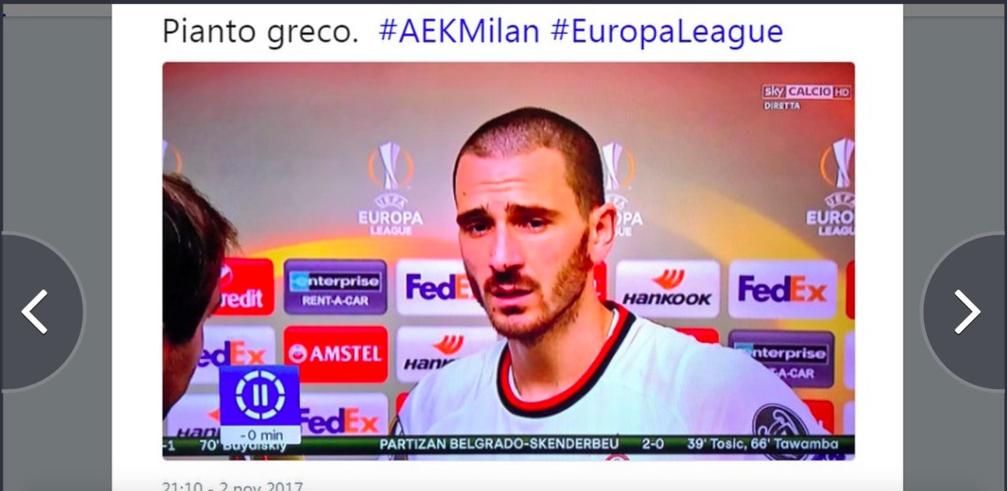 Milan flop con Aek, social infieriscono su Bonucci e Montella