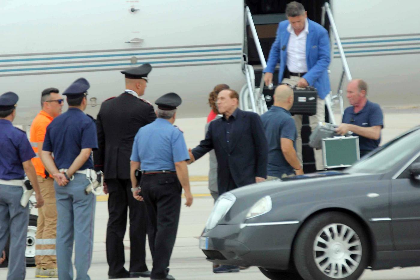 L’intesa finale è arrivata al termine di un’intensa giornata di lavoro a Villa Certosa, la residenza sarda dell’ex premier. Le foto LaPresse dell’arrivo di Berlusconi e Mr Bee in Sardegna.