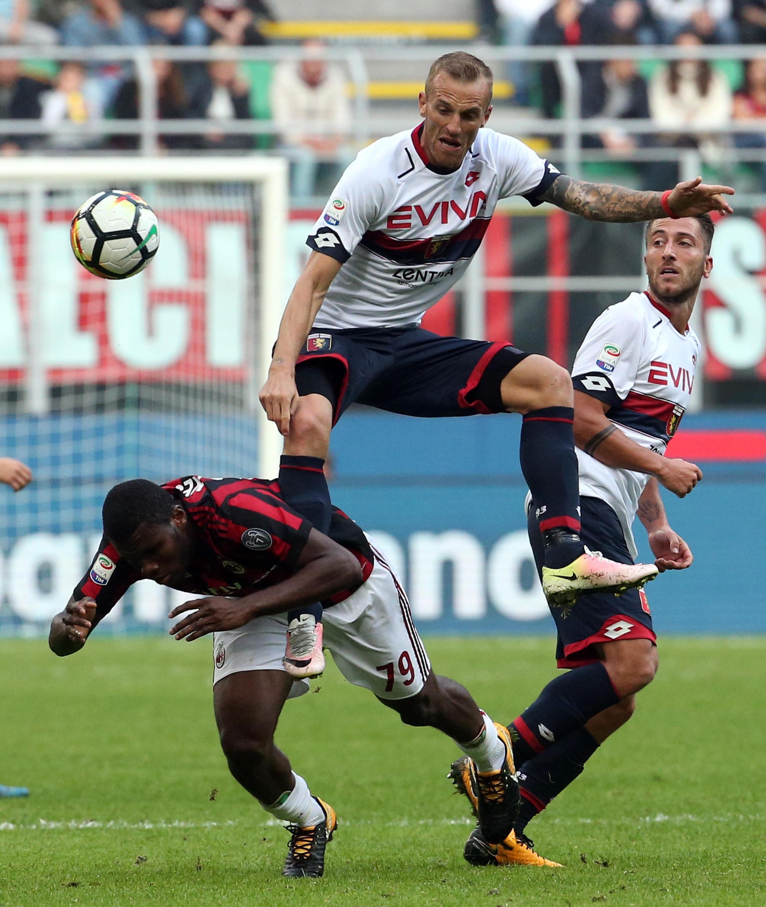 Milan-Genoa 0-0. MILAN (3-5-2): G.Donnarumma 6, Zapata 6.5, Bonucci 4, Rodriguez 5.5, Borini 6.5, Kessie 5.5, Calhanoglu 5.5 (26′ pt Romagnoli 6), Biglia 5, Bonaventura 5 (22’st Calabria 5.5), Suso 6.5, Kalinic 5 (39’st Cutrone sv). (30 Storari, 90 A.Donnarumma, 20 Abate, 22 Musacchio, 15 Gomez, 73 Locatelli, 4 J.Mauri, 18 Montolivo, 9 André Silva). All.: Montella 5.