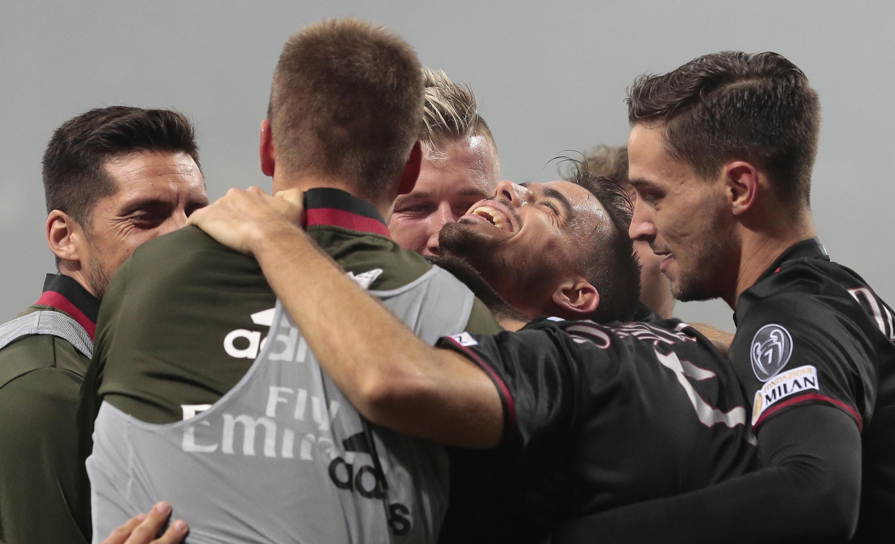 Milan (4-3-3): Donnarumma 6, Abate 5.5, Gustavo Gomez 6, Paletta 7, De Sciglio 5.5, Kucka 6, Locatelli 6, Bonaventura 7 (43′ st Pasalic sv), Suso 7.5, Bacca 5 (26′ st Fernandez 6), Niang 5.5 (34′ st Lapadula sv) (1 Gabriel, 35 Pelizzari, 4 Ely, 7 Luiz Adriano, 9 Lapadula, 10 Honda, 16 Poli, 17 Zapata, 23 Sosa, 31 Antonelli) All.: Montella 6.