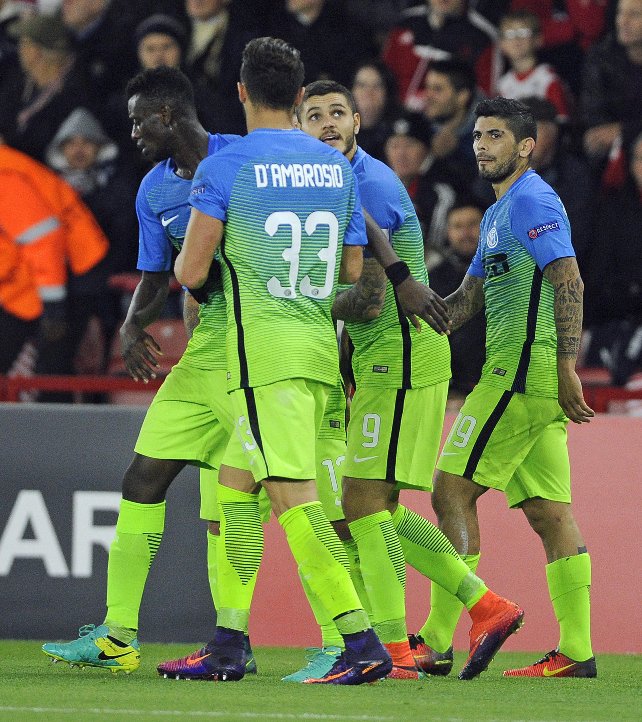 Inter (4-3-3): Handanovic; Ansaldi, Miranda, Murillo, D’Ambrosio; Joao Mario, Medel, Brozovic; Candreva, Icardi, Perisic. All.: Pioli