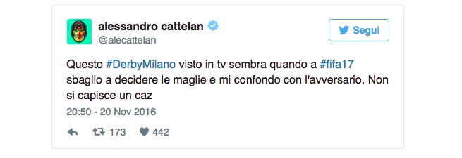 Infatti le divise delle due formazioni sono praticamente indistinguibili e, più che una partita tra rossoneri e nerazzurri, si può parlare di neri contro neri. I tifosi di Milan e Inter stanno protestando molto visto che solo i pantaloncini consentono di capirci qualcosa. Ecco alcuni tweet di protesta: