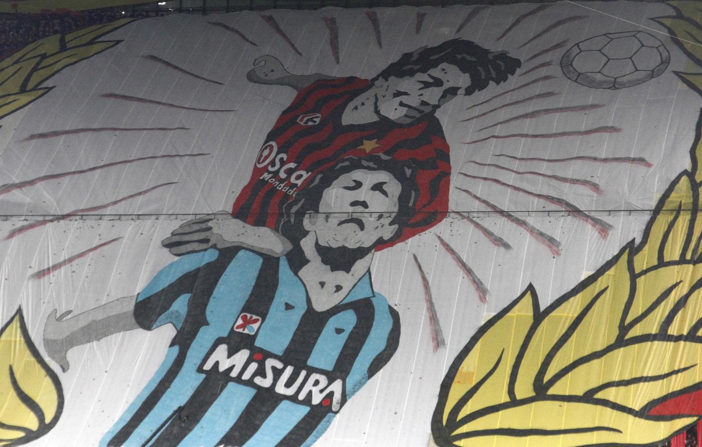 La coreografia della Curva Sud del Milan ricorda una rete storica per i colori rossoneri: lo stacco di Mark Hateley di testa anticipando Fulvio Collovati della stagione 1984/1985. Un derby che il Milan non vinceva da 6 anni e che terminò con la vittoria dei rossoneri per 2-1. Sopra la gigantografia del gol, ecco comparire la scritta: “Sovrastiamoli”.