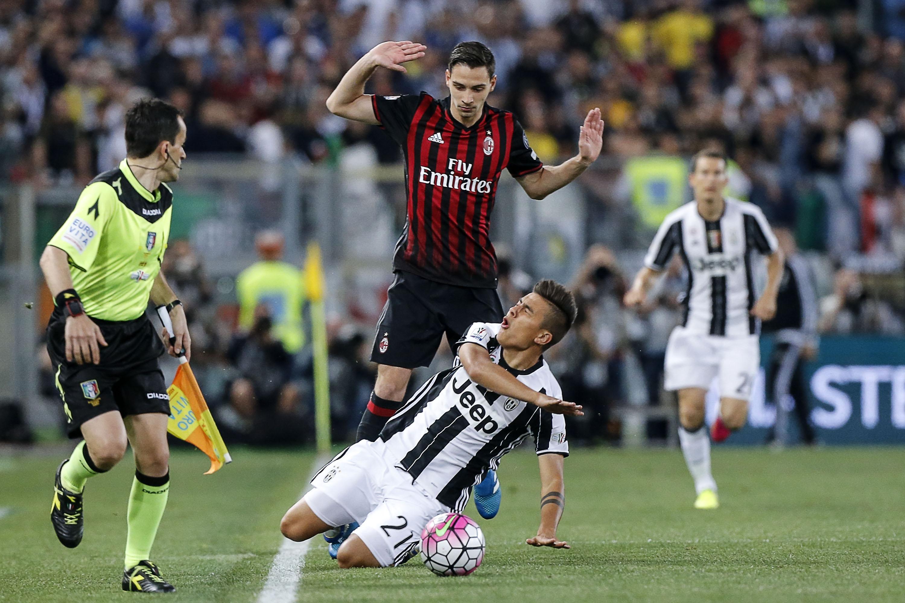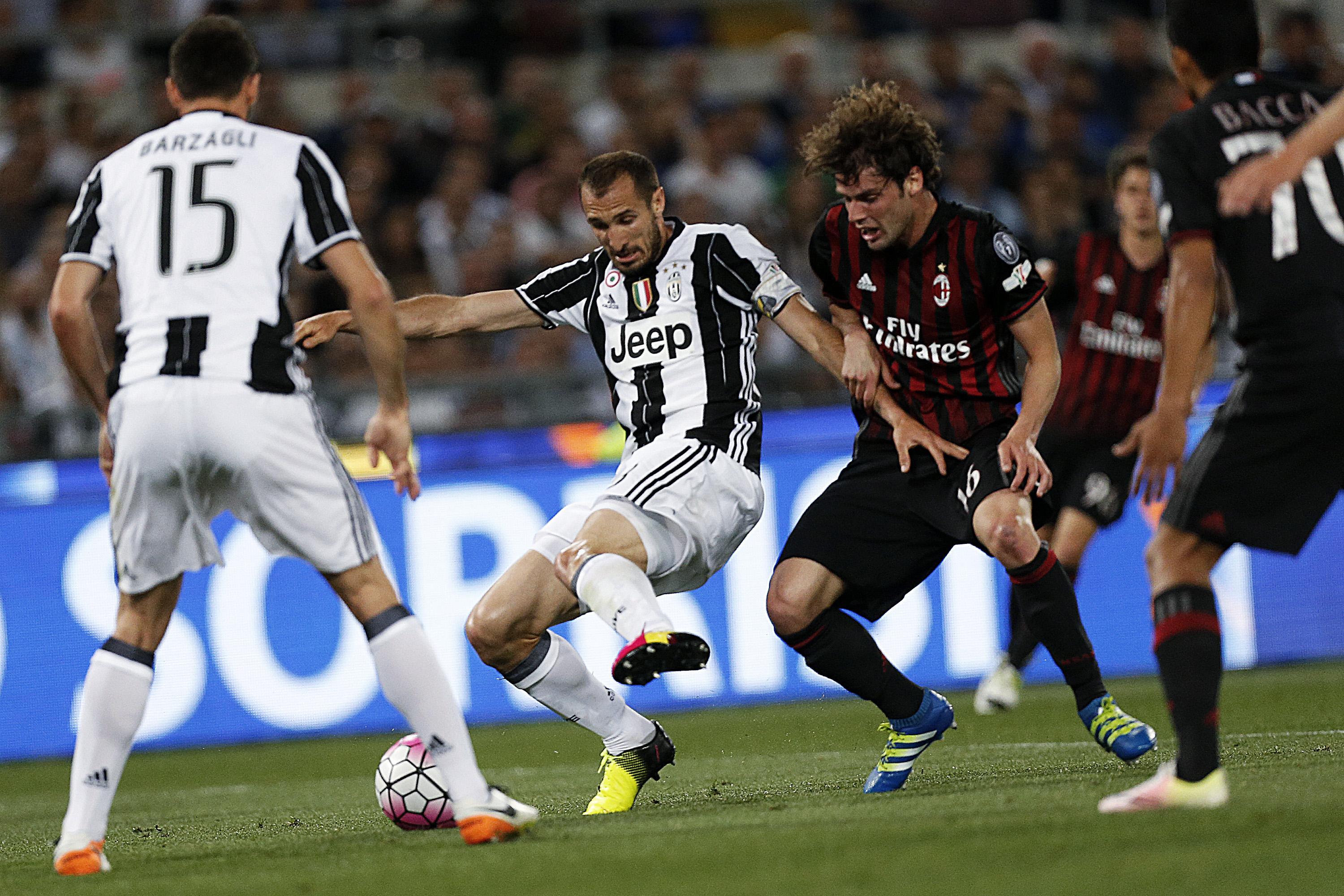 Arbitro: Rocchi di Firenze 6 Reti: 5′ del secondo tempo supplementare Morata Recupero: 1′ e 2′, 0′ e 3′ nei due tempi supplementari Angoli: 6 a 3 per il Milan Ammoniti: Zapata, Pogba, Honda, Niang, Barzagli, Chiellini, Morata, Josè Mauri Spettatori: 67mila circa.