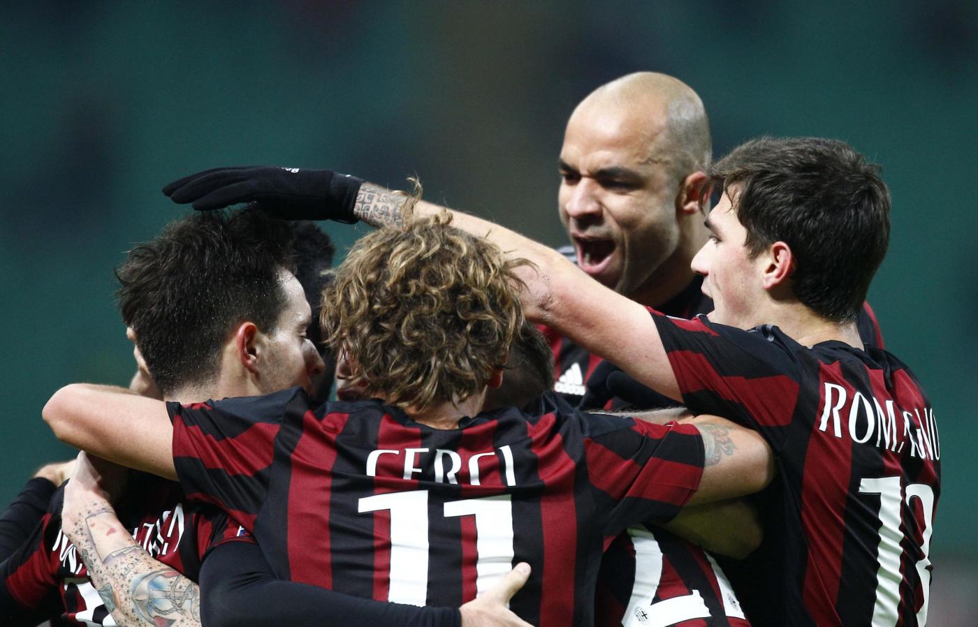 MILAN (4-4-2): Donnarumma, Abate, Alex, Romagnoli, Antonelli; Cerci, Kucka, Montolivo, Bonaventura; Bacca, M’Baye Niang. A disposizione: Abbiati, Calabria, De Sciglio, Rodrigo Ely, Mexes, C. Zapata, Nocerino, Poli, Suso, Josè Mauri, Honda, Luiz Adriano. Allenatore: Sinisa Mihajlovic.