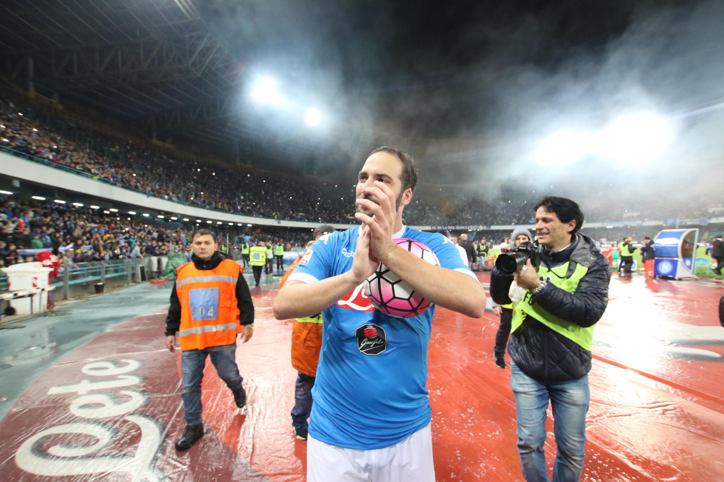 – 26′ st: Mertens entra in area di rigore da sinistra e serve Higuain che stoppa il pallone con il petto, spalle alla porta ed in avvitamento fa partire un tiro che s’insacca sotto la traversa. Foto Ansa.