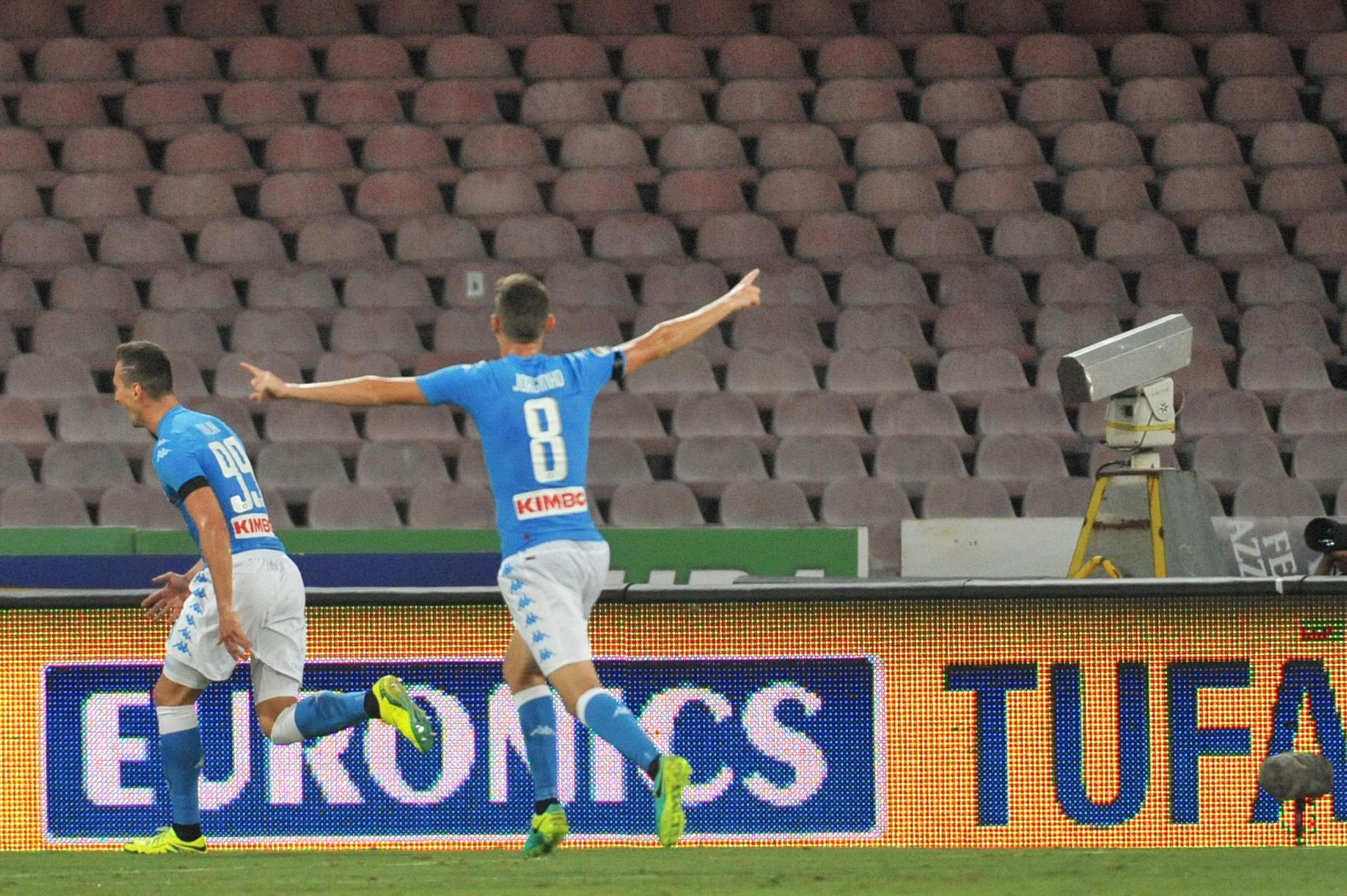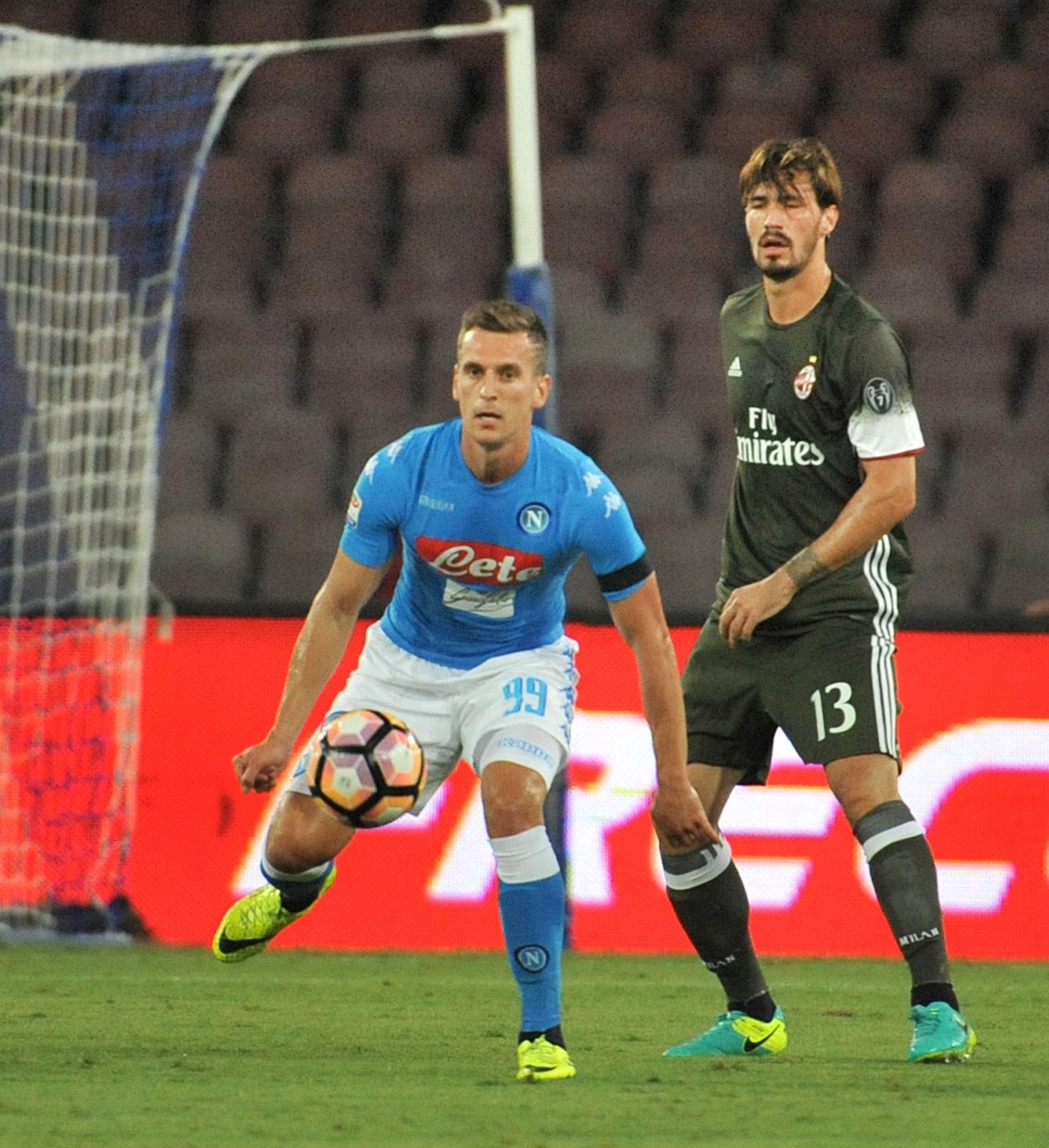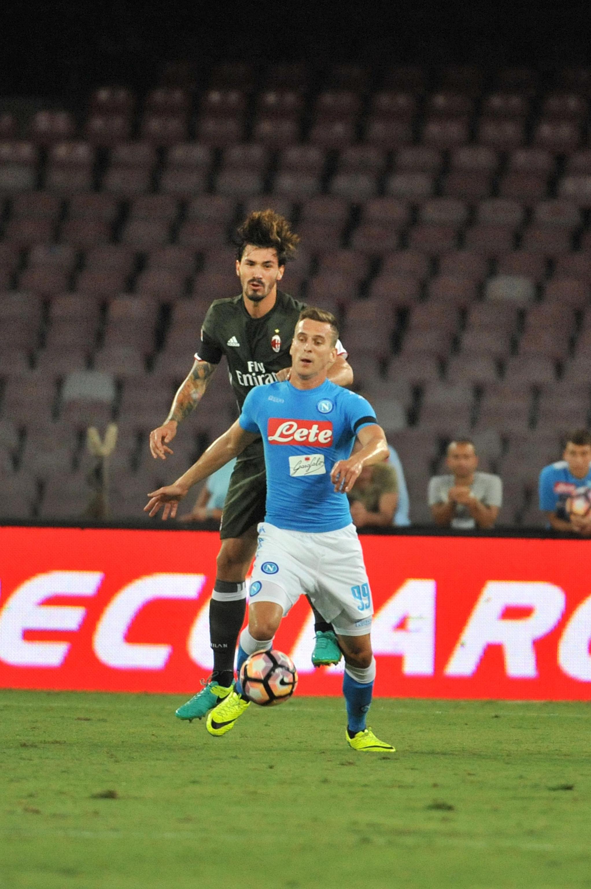 Napoli-Milan, formazioni ufficiali. Napoli (4-3-3): Reina; Hysaj, Albiol, Koulibaly, Ghoulam; Allan, Jorginho, Hamsik; Callejon, Milik, Mertens. A disp.: Rafael, Sepe, Maggio, Chiriches, Strinic, Lasicki, Valdifiori, Grassi, Zielinski, L. Insigne, R. Insigne, Gabbiadini. All.: Sarri Squalificati: – Indisponibili: Tonelli, Giaccherini, El Kaddouri Milan (4-3-3): Donnarumma; Abate, Gomez, Romagnoli, De Sciglio; Kucka, Montolivo, Bonaventura; Suso, Bacca, Niang. A disp.: Gabriel, Diego Lopez, Ely, Calabria, Antonelli, Vangioni, Locatelli, Sosa, Jose Mauri, Keisuke Honda, Luiz Adriano, Lapadula. All.: Montella. Squalificati: Paletta (1). Indisponibili: Zapata, Bertolacci e Vergara, Poli.