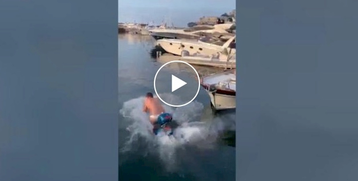 Il video pubblicato su YouTube dal canale “anteprima24 giornale online”. Il barista vince la scommessa gettandosi in mare con il motorino. Balotelli è di parola e lo paga.