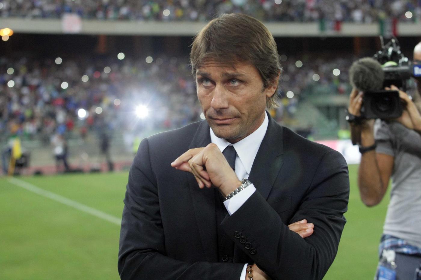 Sugli spalti i giochi di parole si sono sprecati: tutta l’Italia presente, da Trapani ad Acquaviva delle fonti, ha declinato sugli striscioni la formula “Co-Te” per dare l’in bocca al lupo all’allenatore, e non è mancata anche l’ironia sul riscatto azzurro, racchiusa nel telo con scritto una breve filastrocca, “Tra-pianti del mondiale e ricrescita Con-te”, C’è stato anche chi ha chiesto un impegno per il ritorno dei marò. Dopo il fischio d’inizio Conte ha vissuto le varie fasi di gioco alla sua maniera, fisso in piedi davanti alla panchina, ma la tensione del noviziato è svanita dopo tre giri di orologio: al gol di Immobile l’esplosione di gioia condivisa con i collaboratori del suo “staff”.