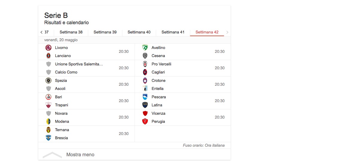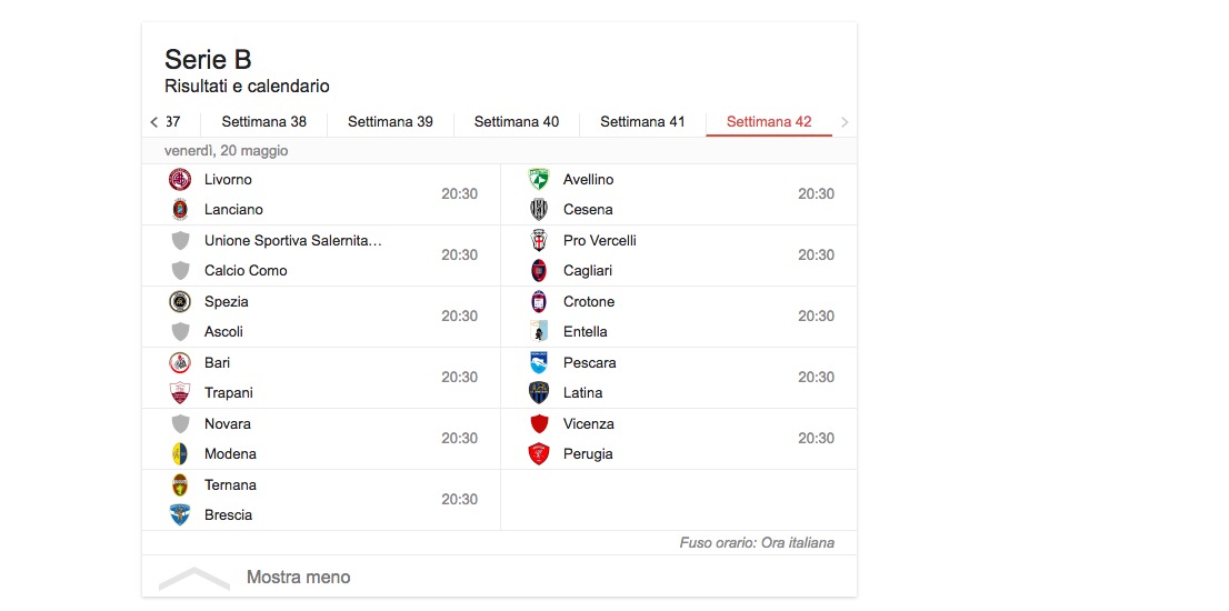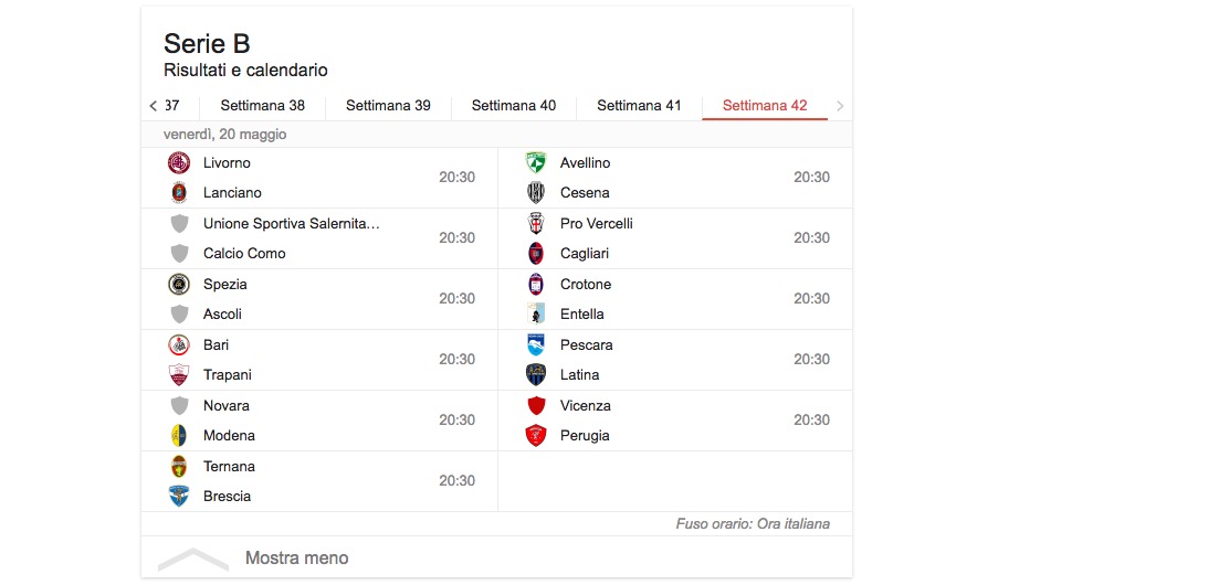 Pagliarulo (Trapani) Ferreira (Virtus Entella) 3 reti Arini (Avellino) D’Angelo (Avellino) Gavazzi (Avellino) Tavano (Avellino) Cerri (Cagliari) Di Gennaro (Cagliari) Caldara (Cesena) Garritano (Cesena) Perico (Cesena) Bessa (Como) Cristiani (Como) Martella (Crotone) Zampano G. (Crotone) Brosco (Latina) Corvia (Latina) Schiattarella (Latina) Aramu (Livorno) Fedato (Livorno) Mazzarani (Modena; 2 rigori) Viola (Novara) Aguirre (Perugia) Prcic (Perugia)
