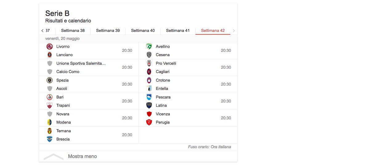Brezovec (Spezia) Errasti (Spezia) Belloni (Ternana) Gondo (Ternana) Meccariello (Ternana) Valjent (Ternana) Nizzetto (Trapani) D’Elia (Vicenza) Gatto L. (Vicenza; 2 rigori) Signori (Vicenza) Vita (Vicenza; 1 rigore) Cutolo (Virtus Entella) Iacoponi (Virtus Entella) Pellizzer (Virtus Entella) Di Cecco (Virtus Lanciano) 1 rete Altobelli (Ascoli) Antonini (Ascoli) Bellomo (Ascoli; 1 rigore)