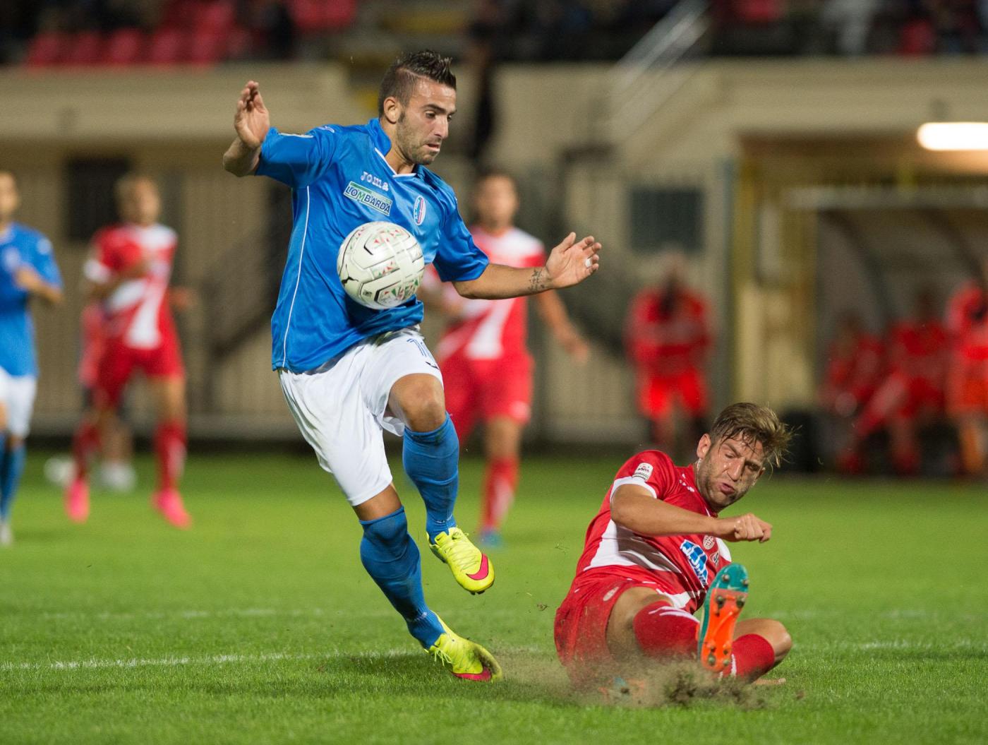 Foto LaPresse – Claudio Grassi19/09/2015 Pavia (Italia)Sport CalcioPavia – SudtirolCampionato di Calcio Lega Pro 2015-2016Stadio "Pietro Fortunati"Nella foto: Alessandro Cesarini (centrocampista Pavia) e Alessandro Bassoli (difensore Sudtirol)Photo LaPresse – Claudio Grassi19 September 2015 Pavia (Italy)Sport SoccerPavia – SudtirolItalian Football Championship League Lega Pro 2015-2016""Pietro Fortunati" Stadium