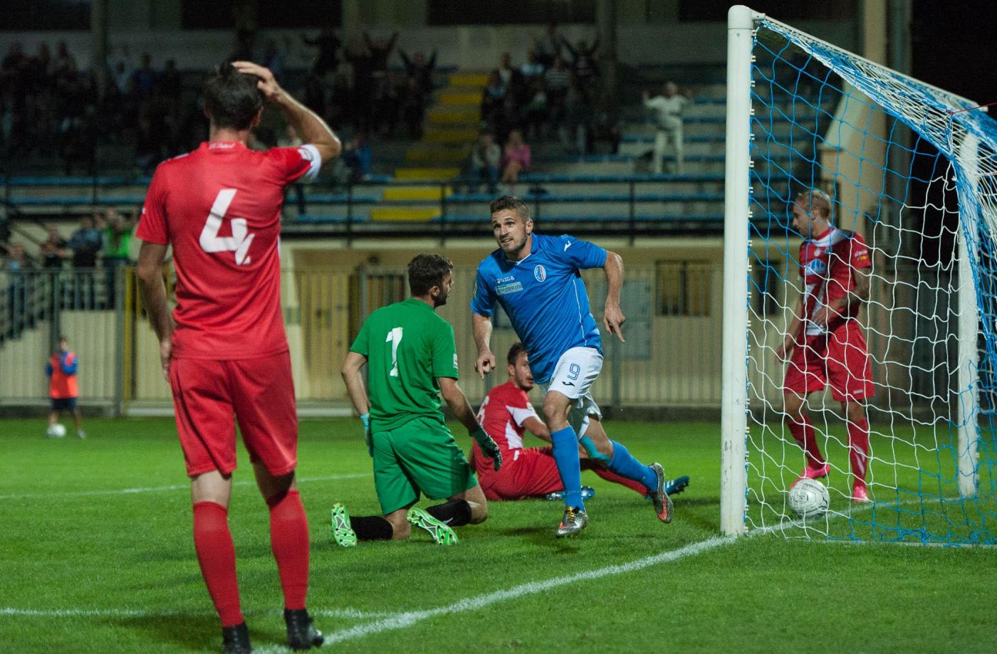 Foto LaPresse – Claudio Grassi19/09/2015 Pavia (Italia)Sport CalcioPavia – SudtirolCampionato di Calcio Lega Pro 2015-2016Stadio "Pietro Fortunati"Nella foto: il gol dell’1-0 di Mattia Marchi (attaccante Pavia)Photo LaPresse – Claudio Grassi19 September 2015 Pavia (Italy)Sport SoccerPavia – SudtirolItalian Football Championship League Lega Pro 2015-2016""Pietro Fortunati" Stadium