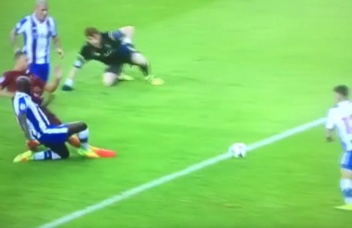 Porto-Roma, Dzeko ha dribblato Casillas ma poi ha sbagliato un gol facilissimo calciando sul difensore portoghese.