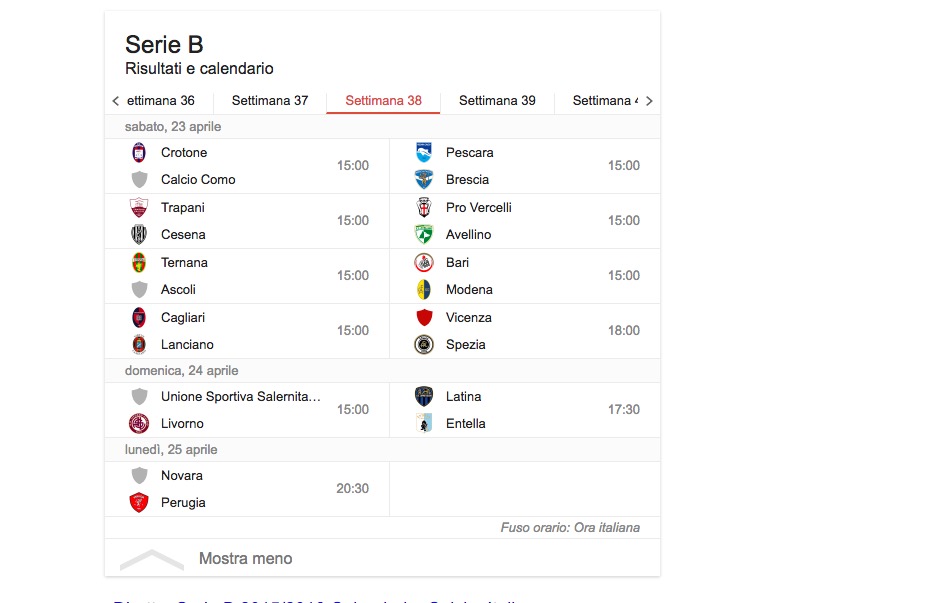 Germano (Pro Vercelli) Rossi (Pro Vercelli) Bagadur (Salernitana) Bovo (Salernitana) Bus (Salernitana) Colombo (Salernitana) Gatto A. (Salernitana) Odjer (Salernitana) Pestrin (Salernitana) Schiavi (Salernitana) Troianiello (Salernitana) Ciurria (Spezia) De Las Cuevas (Spezia) Migliore (Spezia) Postigo (Spezia) Pulzetti (Spezia)