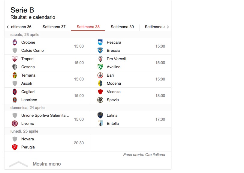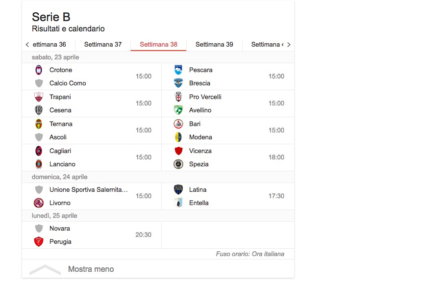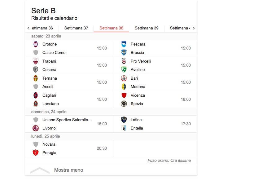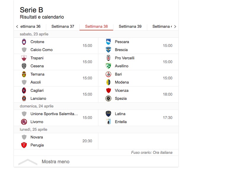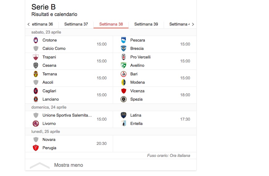 Scozzarella (Trapani; 2 rigori) Torregrossa (Trapani) 2 reti Addae (Ascoli) Perez (Ascoli) Bastien (Avellino) D’Angelo (Avellino) Jidayi (Avellino) Defendi (Bari) Rada (Bari) Abate (Brescia) Caracciolo Ant. (Brescia) Calabresi (Brescia/Livorno) Ceppitelli (Cagliari) Cerri (Cagliari) Deiola (Cagliari)