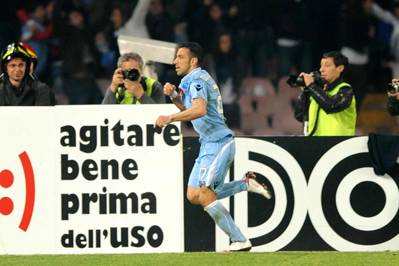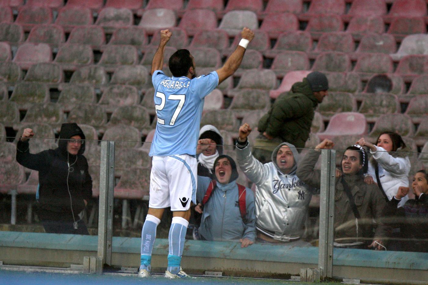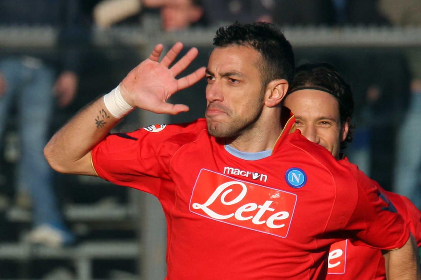 Quagliarella con la maglia del Napoli esulta dopo un gol alla Juventus (LaPresse)