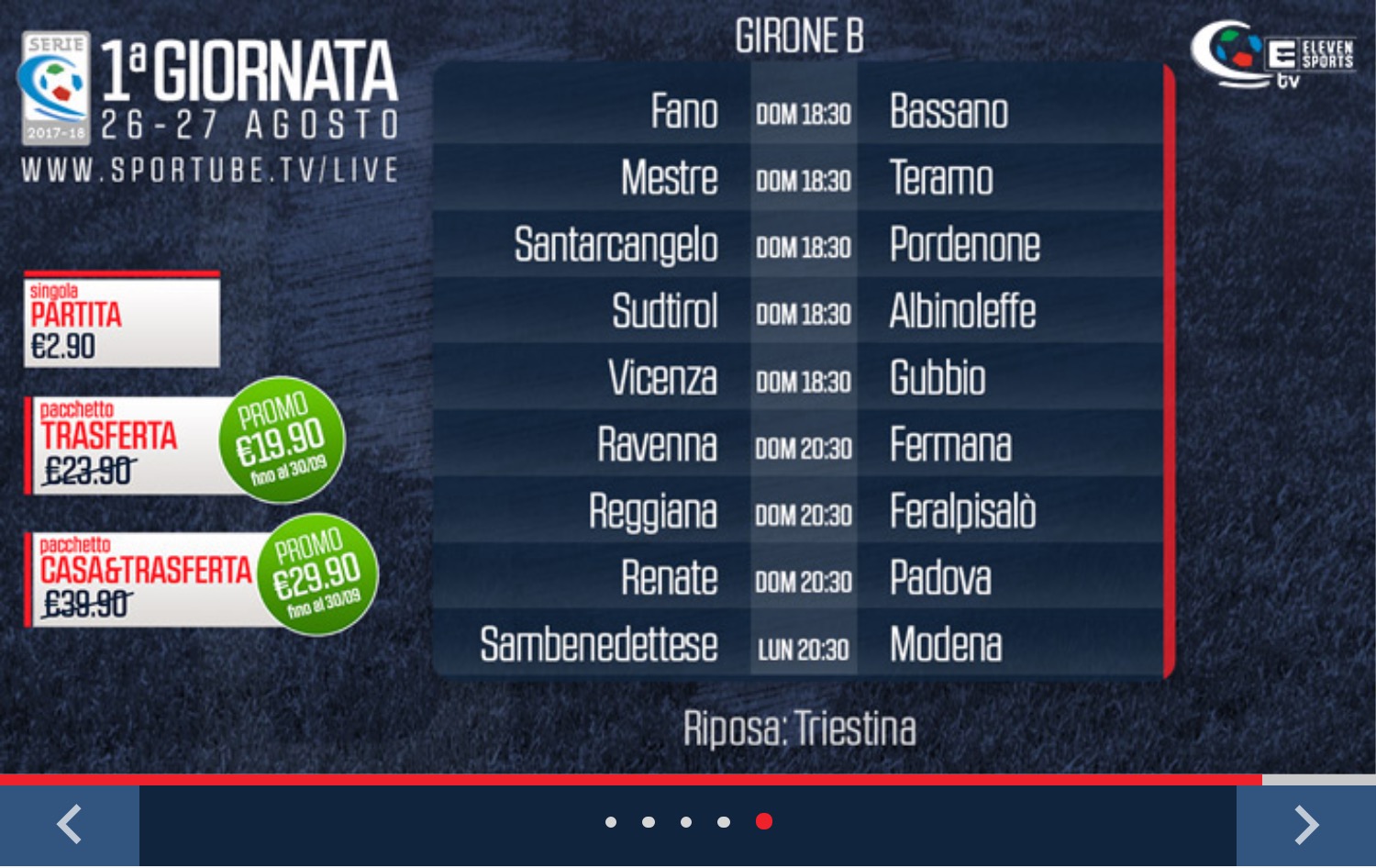 - Sudtirol-AIbinoleffe – domenica 27 agosto – 18.30