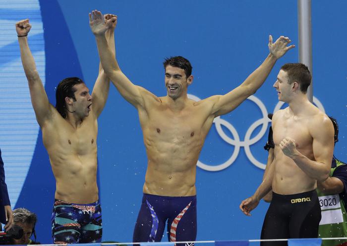 Michael Phelps ha ottenuto il tempo di 50″33 a delfino. La sua è stata un’uscita di scena trionfale dato che ha chiuso come aveva cominciato ad Atene con 6 medaglie. Ad aiutarlo sono stati il dorsista Ryan Murphy in 51″85, che polverizza il record mondiale dei 100 dorso (l’ottavo di questi Giochi) cancellando il mitico 51″94 di Aaron Peirsol del 2009 a Indianapolis; il ranista Cody Miller in 59″03 e lo stileliberista Nathan Adrian in 46″74.