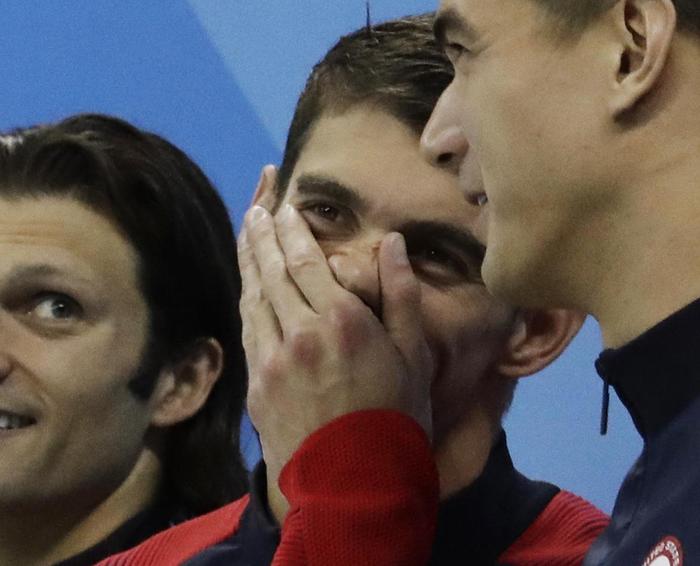 Il 3’27″95 è record olimpico. Battuta la Gran Bretagna a 1″29 e l’Australia a 1″96. Alla fine, un Phelps terribilmente commosso, ha salutato tutti in lacrime le Olimpiadi (foto Ansa).