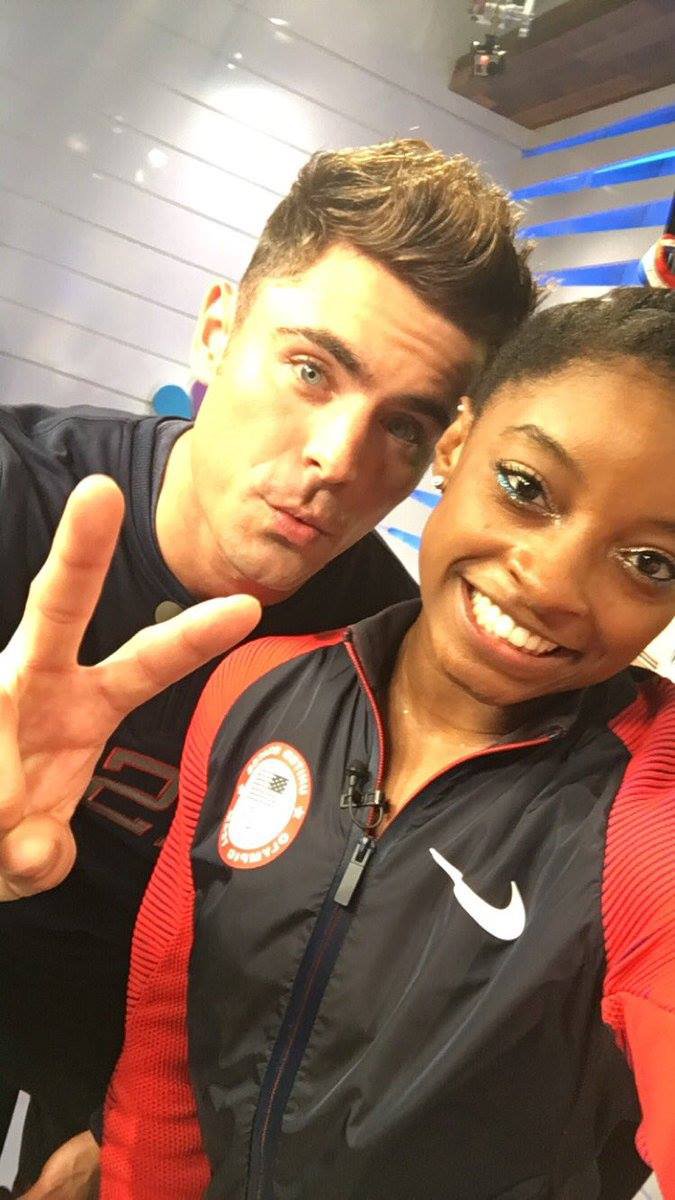 Ed è stata proprio la plurimedagliata campionessa olimpica a postare sui suoi profili social le immagini che la ritraggono col bel 28enne. Tanti i baci sulla guancia immortalati col cellulare di lei, mentre in un video caricato su Twitter e YouTube si vede l’atletico Zac che prende in braccio Simone, visibilmente emozionata. “Chiamatemi miss Efron”, ha commentato la ginnasta che finalmente tra foto e selfie ha ricevuto il tanto desiderato bacio.