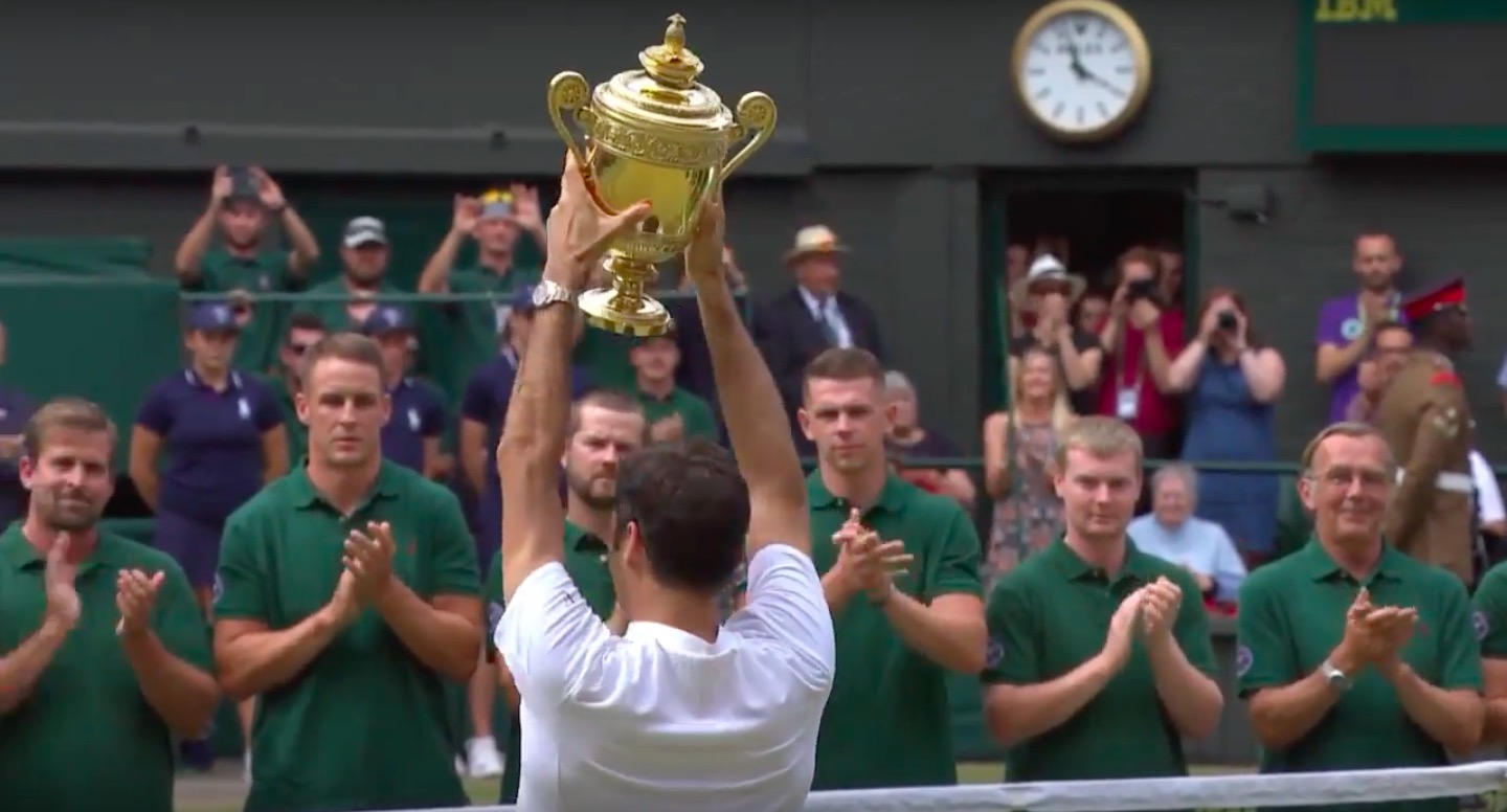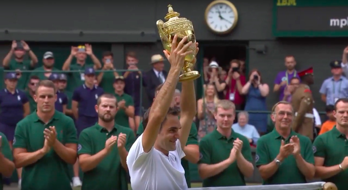 WIMBLEDON (GRAN BRETAGNA) –  Leggenda, intramontabile, il “piu’ grande”, come solo Alì: non ci possono essere altri aggettivi per raccontare Roger Federer, oggi vincitore per l’8/a volta a Wimbledon, per di più a 36 anni, record di longevità per coloro che hanno alzato il trofeo sull’erba londinese. Le sue lacrime dopo la vittoria danno il senso dell’impresa che forse nemmeno lui si aspettava. Federer è davvero la storia del tennis, un fenomeno unico, come ha dimostrato anche oggi. E tutto questo dopo che a fine gennaio era stato capace di rientrare nel circuito Atp dopo sei mesi di stop, vincendo subito gli Australian Open.