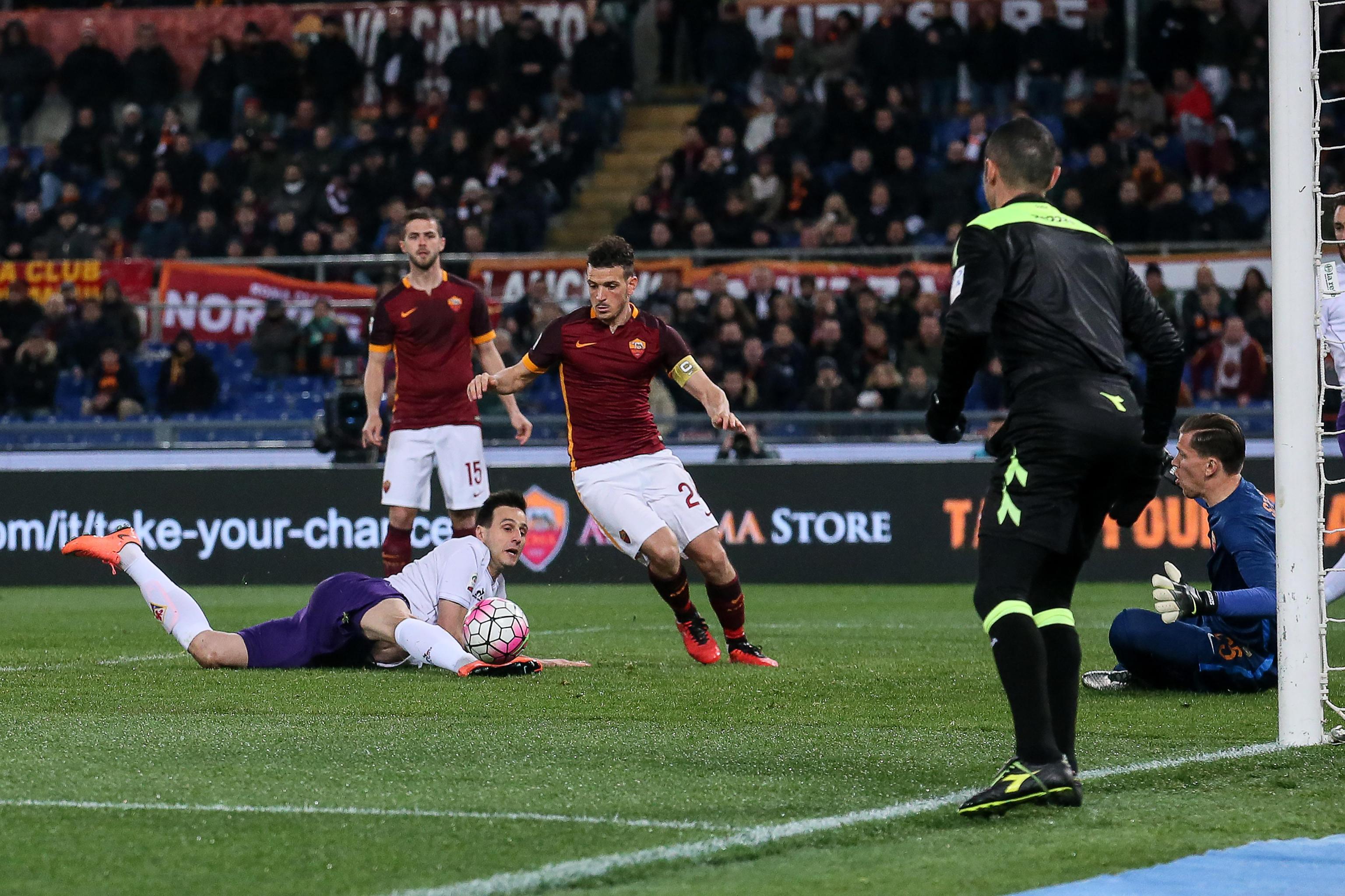Roma-Fiorentina: tabellino, pagelle, marcatori, spettatori, note. Roma (4-3-3): Szczesny 6, Florenzi 6.5, Manolas 6, Ruediger 6.5, Digne 6, Nainggolan 6.5, Keita 6, Pjanic 7.5, Salah 7 (41′ st Dzeko sv), Perotti 6.5 (16′ st Vainqueur 6), El Shaarawy 7.5 (31′ st Totti 6). (26 De Sanctis, 5 Castan, 13 Maicon, 33 Emerson, 35 Torodisis, 87 Zukanovic, 6 Strootman, 48 Ucan, 14 Falque). All.: Spalletti 7.
