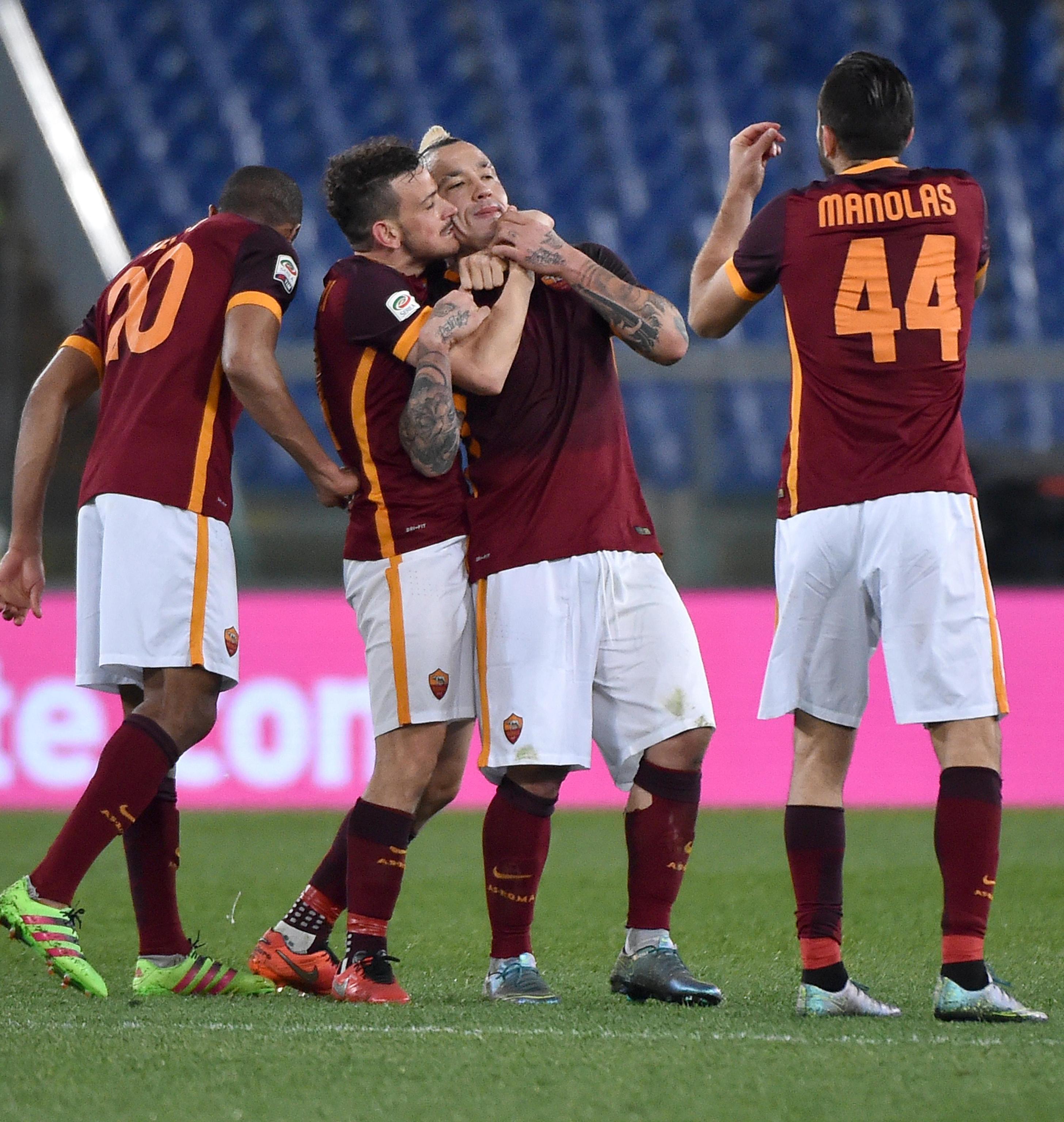 Arbitro: Irrati di Pistoia 6 Reti: nel pt 22′ El Shaarawy, 25′ Salah, 38′ Perotti, 47′ pt Ilicic (rigore); nel st 13′ Salah Angoli: 5-4 per la Roma Recupero: 2′ e 2′ Ammoniti: Badelij, Salah, Pjanic, Bernardeschi, Tino Costa per gioco falloso, Nainggolan per comportamento non regolamentare. Spettatori: 34.000.