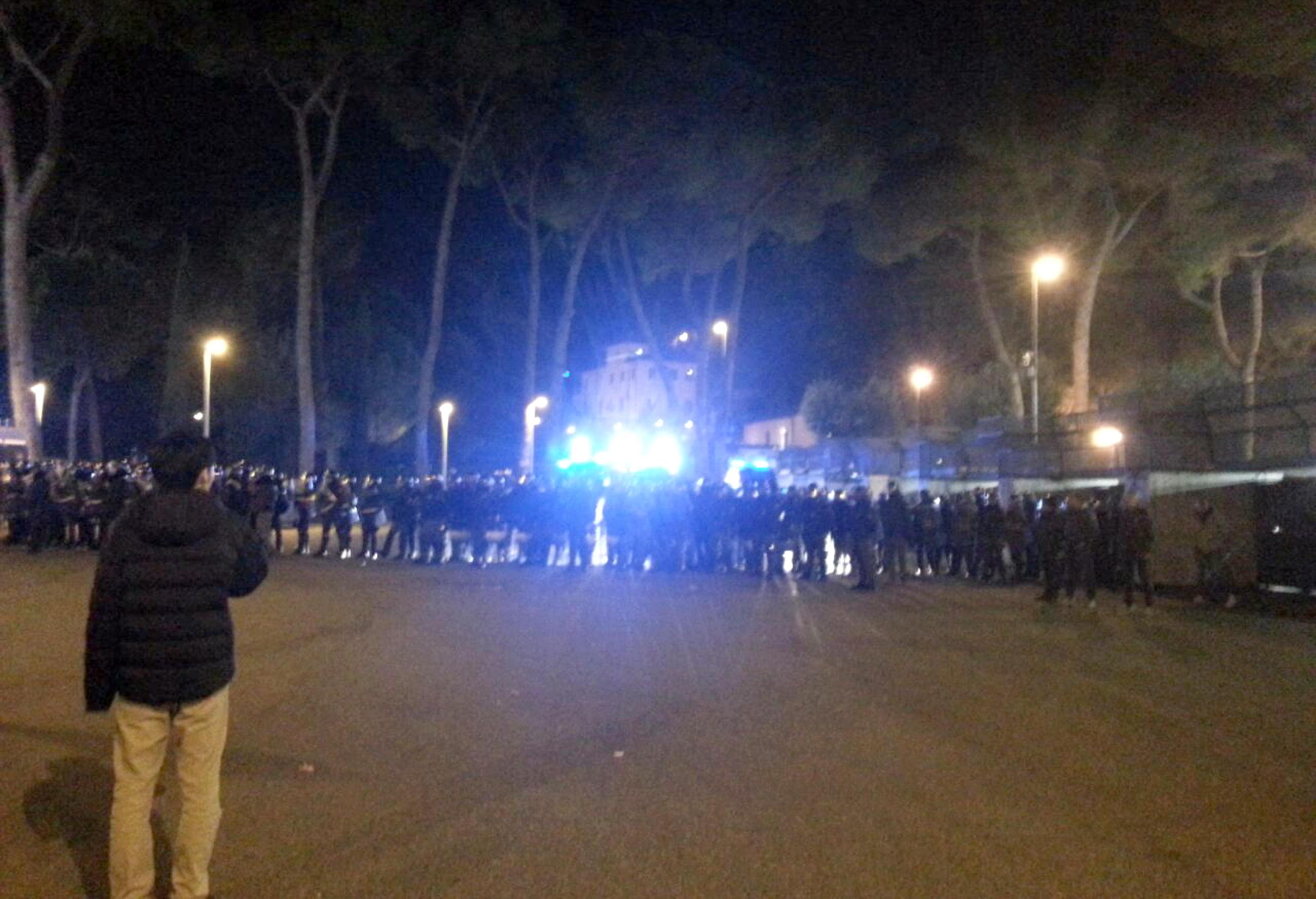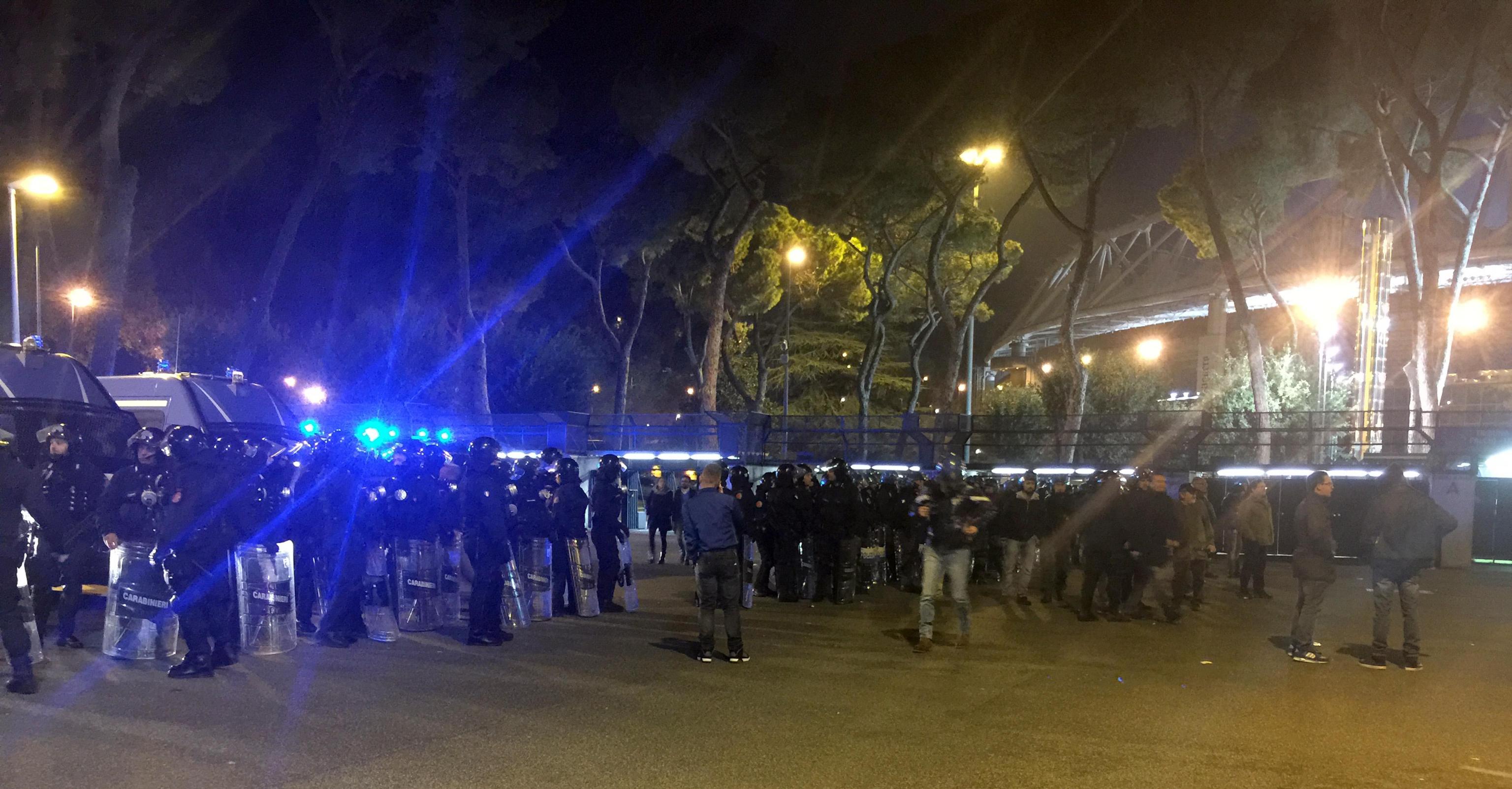 Forze dell’ordine all’esterno dell’Olimpico (LaPresse)