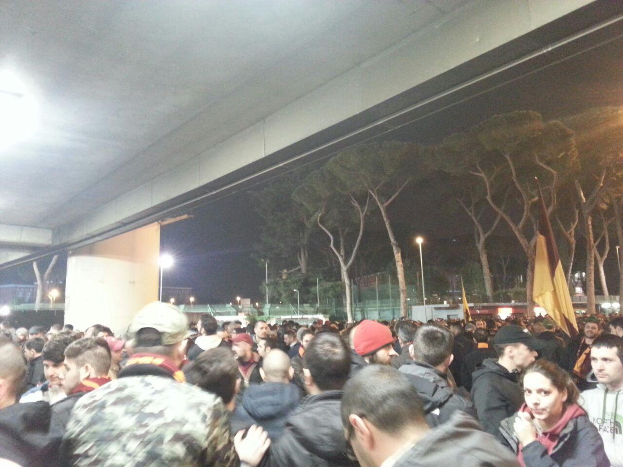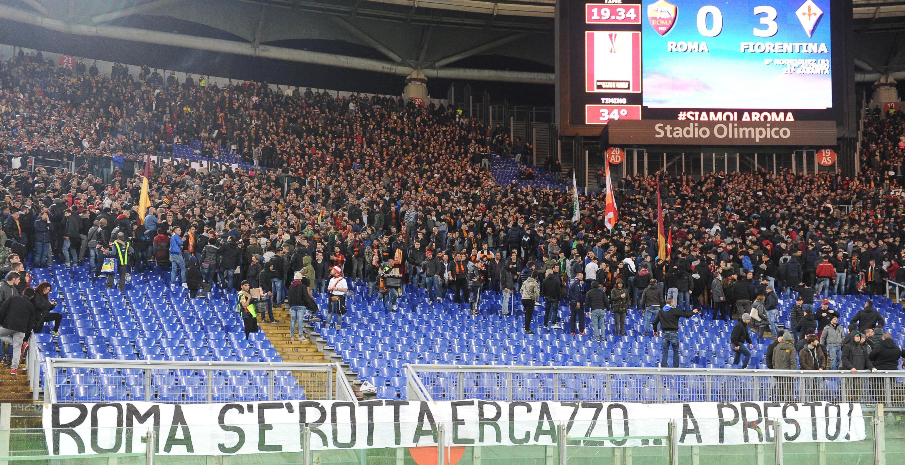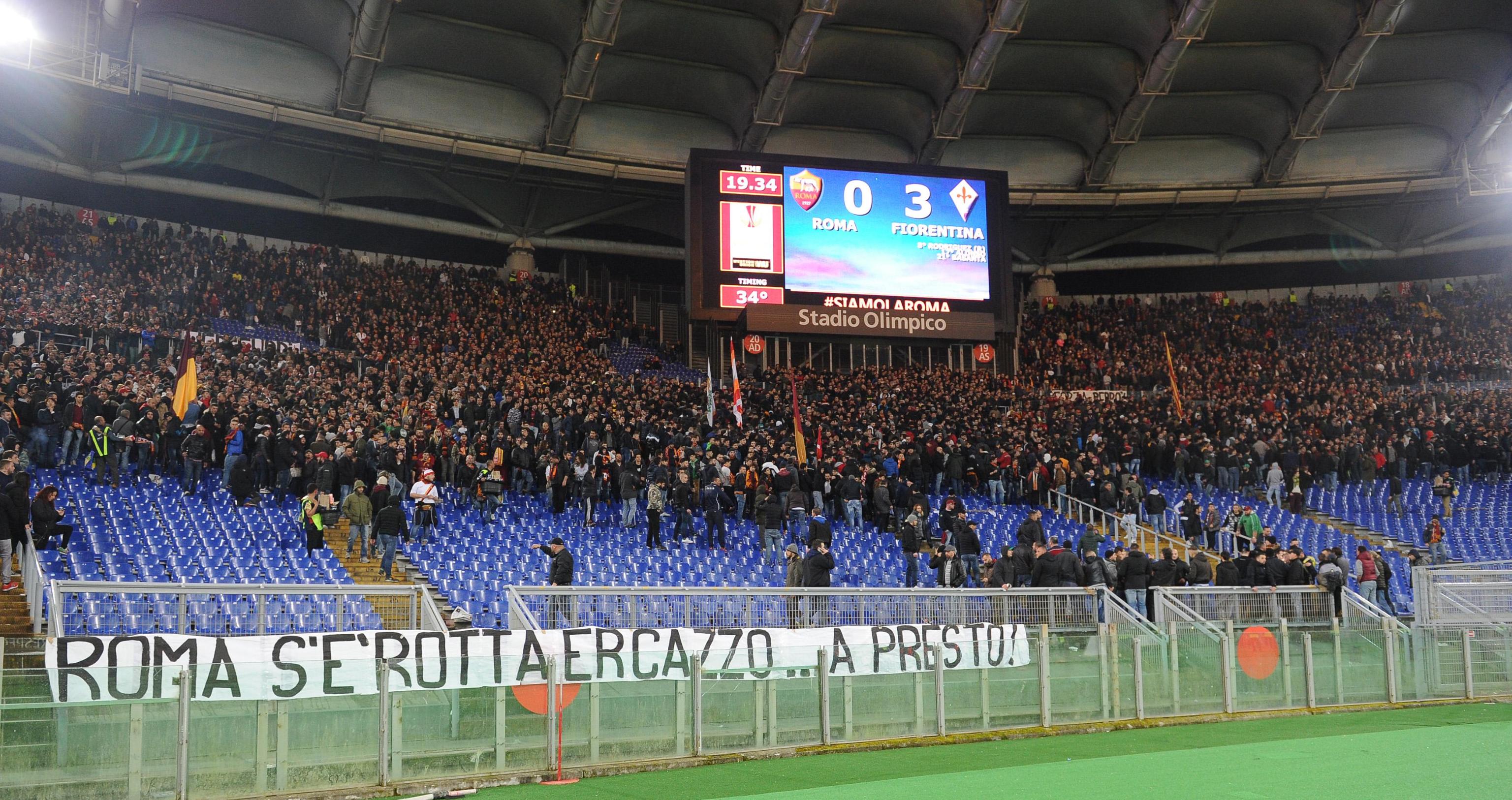 La serata era iniziata all’insegna della tensione. La Curva Sud aveva esposto un chiaro striscione “Garcia non si tocca, a chi non sta bene calci in bocca”. Continuata con un altro “Roma s’è rotta il cazzo… a presto” e quindi con “Mercenari cambiate ‘mestiere'”. Gli ultras hanno abbandonato la curva al 30′, dopo il 3-0 della Fiorentina. Poi sono ritornati nell’ultimo quarto d’ora della partita. A fine gara il confronto con i giocatori. Mentre a cento metri di distanza i tremila tifosi viola festeggiavano la qualificazione ai quarti nei Distinti Nord.