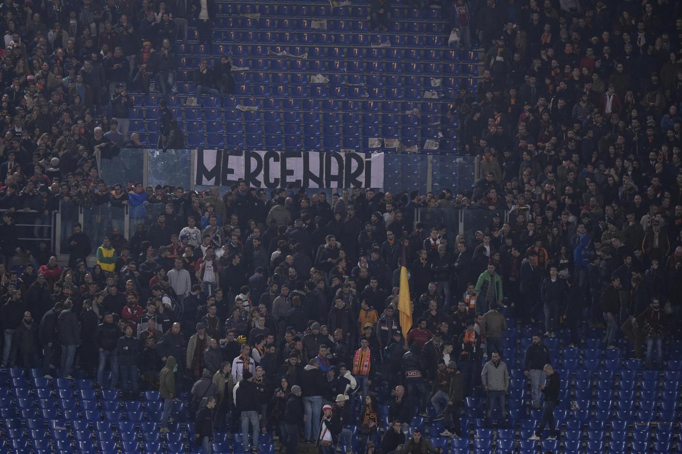 Striscione della Curva Sud “Mercenari cambiate ‘mestiere'” (LaPresse)