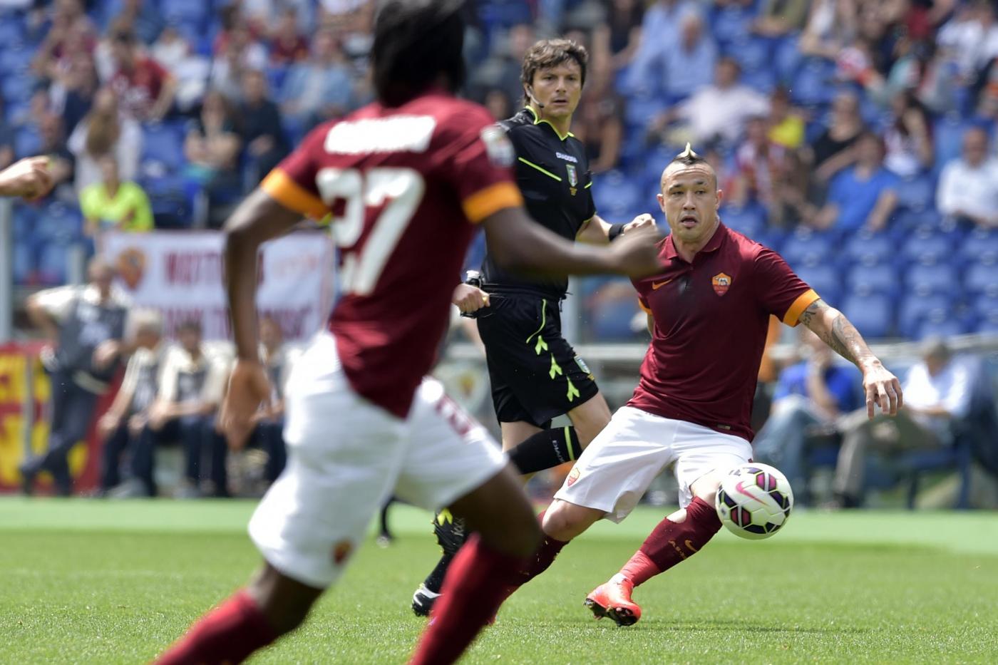 ROMA, STADIO OLIMPICO – Una bella Roma ha vinto 2-0 contro il Genoa nel lunch match della 34esima giornata del campionato italiano di calcio di Serie A. I giallorossi hanno creato diverse occasioni da gol – vedi Nainggolan e Gervinho – prima di sbloccare la partita al 35′ con un gran gol di Seydou Doumbia. Il centravanti della Costa d’Avorio ha sfruttato uno svarione di Facundo Roncaglia e ha insaccato in rete con freddezza davanti a Mattia Perin. Per Seydou Doumbia si tratta del secondo gol negli ultimi quattro giorni. Infatti l’ex Cska Mosca aveva sbloccato anche Sassuolo-Roma con un potente colpo di testa. Il secondo gol dei giallorossi è stato messo a segno da Alessandro Florenzi al 93′. Foto LaPresse e video Vine.