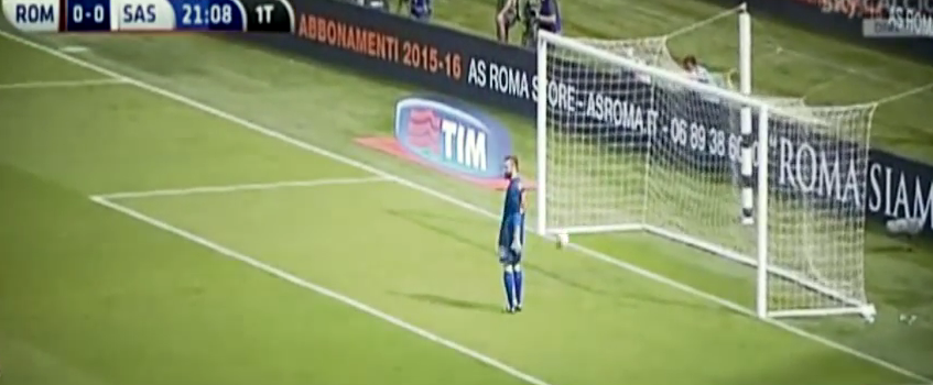 SASSUOLO (4-3-3): Consigli 6, Gazzola 6, Cannavaro 6.5, Acerbi 6, Peluso 6, Missiroli 6.5, Magnanelli 6, Duncan 6 (58′ Biondini 6), Floro Flores 6.5 (63′ Sansone 6), Defrel 7, Politano 6.5 (80′ Berardi sv). (1 Pomini, 79 Pegolo, 20 Ariaudo, 21 Fontanesi, 26 Terranova, 6 Pellegrini, 10 Laribi, 9 Falcinelli, 99 Floccari). All.: Di Francesco 7. Arbitro: Massa di Imperia 5 Reti: 22′ Defrel, 36′ Totti, 44′ Politano, 4′ st Salah Recupero: 0 e 5′ Angoli: 8 a 3 per la Roma Ammoniti: Politano per gioco falloso, Maicon per simulazione, De Rossi, Peluso e Sansone per comportamento non regolamentare Spettatori: 30 mila circa.
