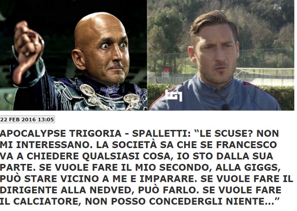 Prima il gol del rocambolesco pari con l’Atalanta, poi una lite clamorosa con Spalletti nel corridoio che porta agli spogliatoi dello stadio di Bergamo: la giornata di Francesco Totti è un’insieme di emozioni forti.