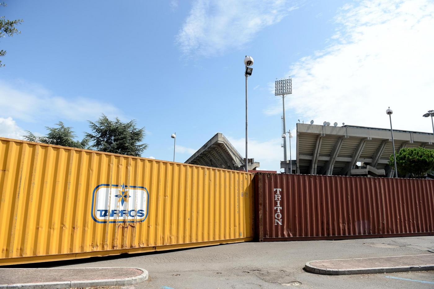 Nella foto: Container che delimiteranno il settore ospiti.Photo LaPresse – Gerardo Cafaro
