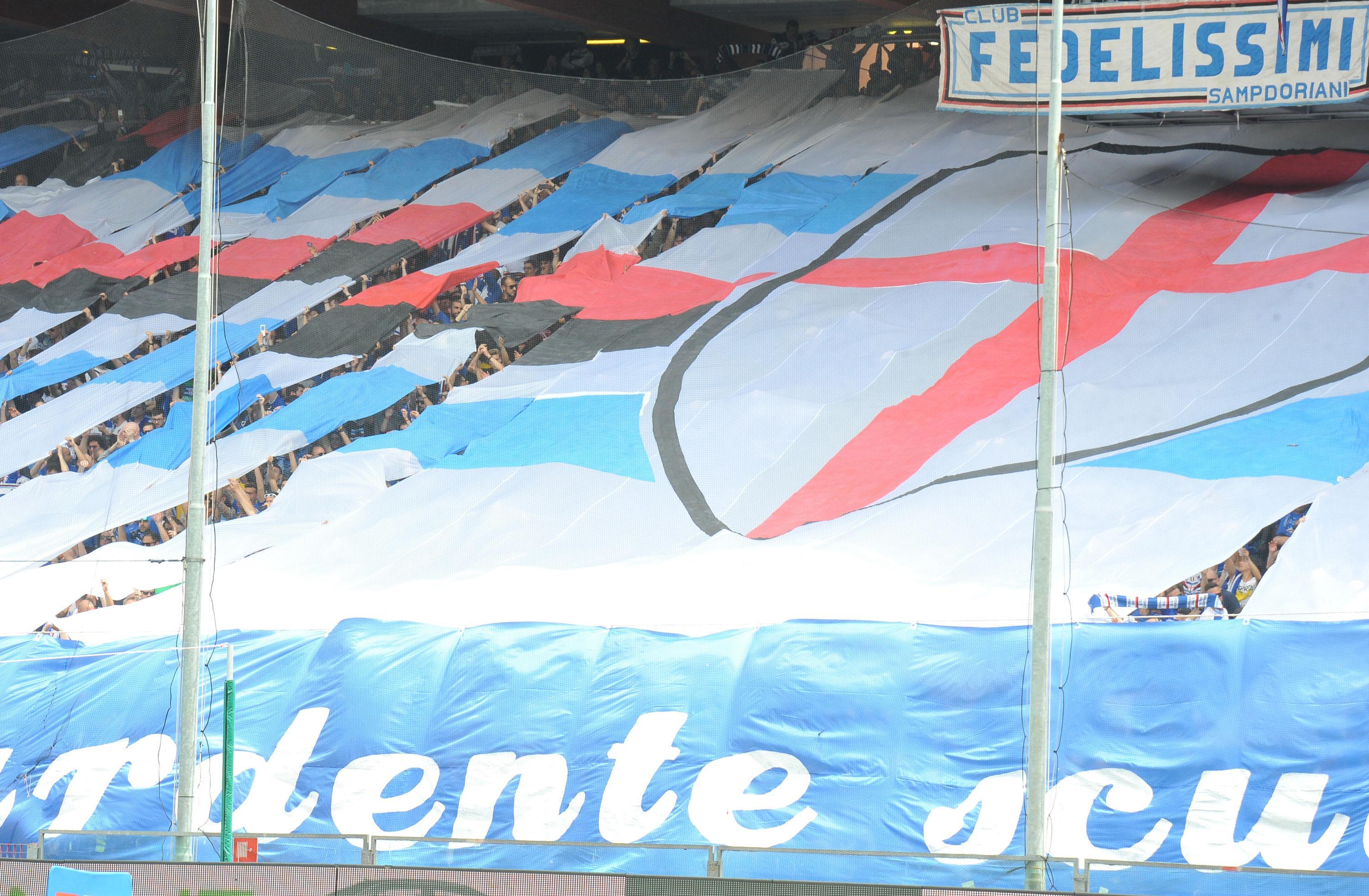 Sampdoria-Genoa, la coreografia dei tifosi rossoblù.