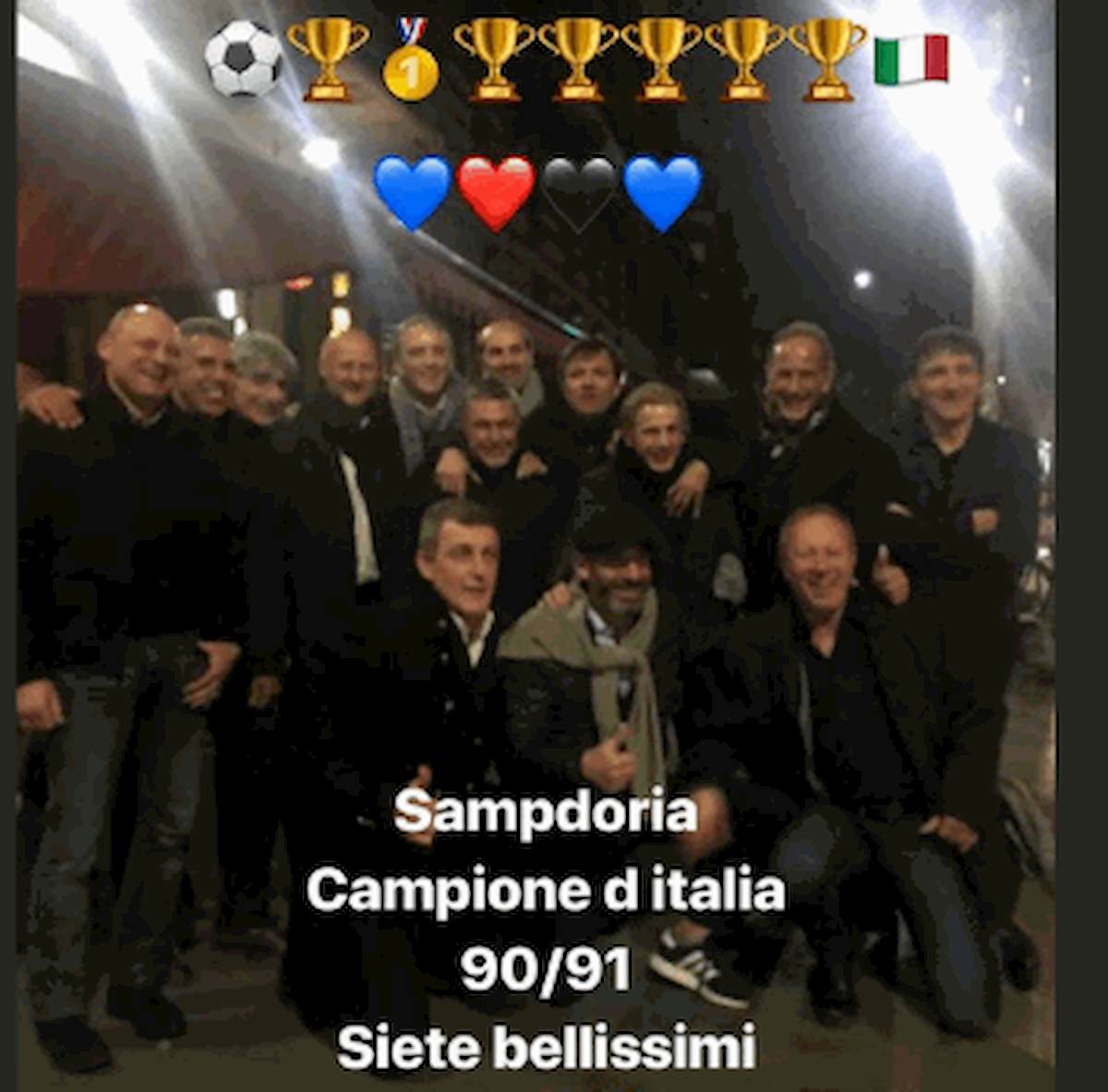 Sampdoria festeggia scudetto 1991 a Milano, da Instagram