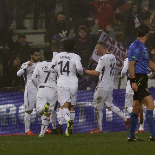 Fiorentina (4-3-3): 12 Tatarusanu, 4 Richards, 2 Gonzalo Rodriguez, 15 Savic, 28 Alonso, 14 Mati Fernandez, 7 Pizarro, 10 Aquilani, 18 Diamanti, 30 Babacar, 74 Salah. (31 Rosati, 40 Tomovic, 23 Pasqual, 5 Badelj, 38 Rosi, 16 Kurtic, 20 Borja Valero, 7 Joaquin, 6 Vargas, 72 Ilicic, 33 Gomez, 9 Gilardino). All. Montella Indisponibili: Basanta, Bernardeschi, Lupatelli, Rossi Diffidati: Alonso, Aquilani, Tomovic Squalificati: nessuno Arbitro: Daniele Doveri di Roma Quote Snai: 3,20 3,30 2,25
